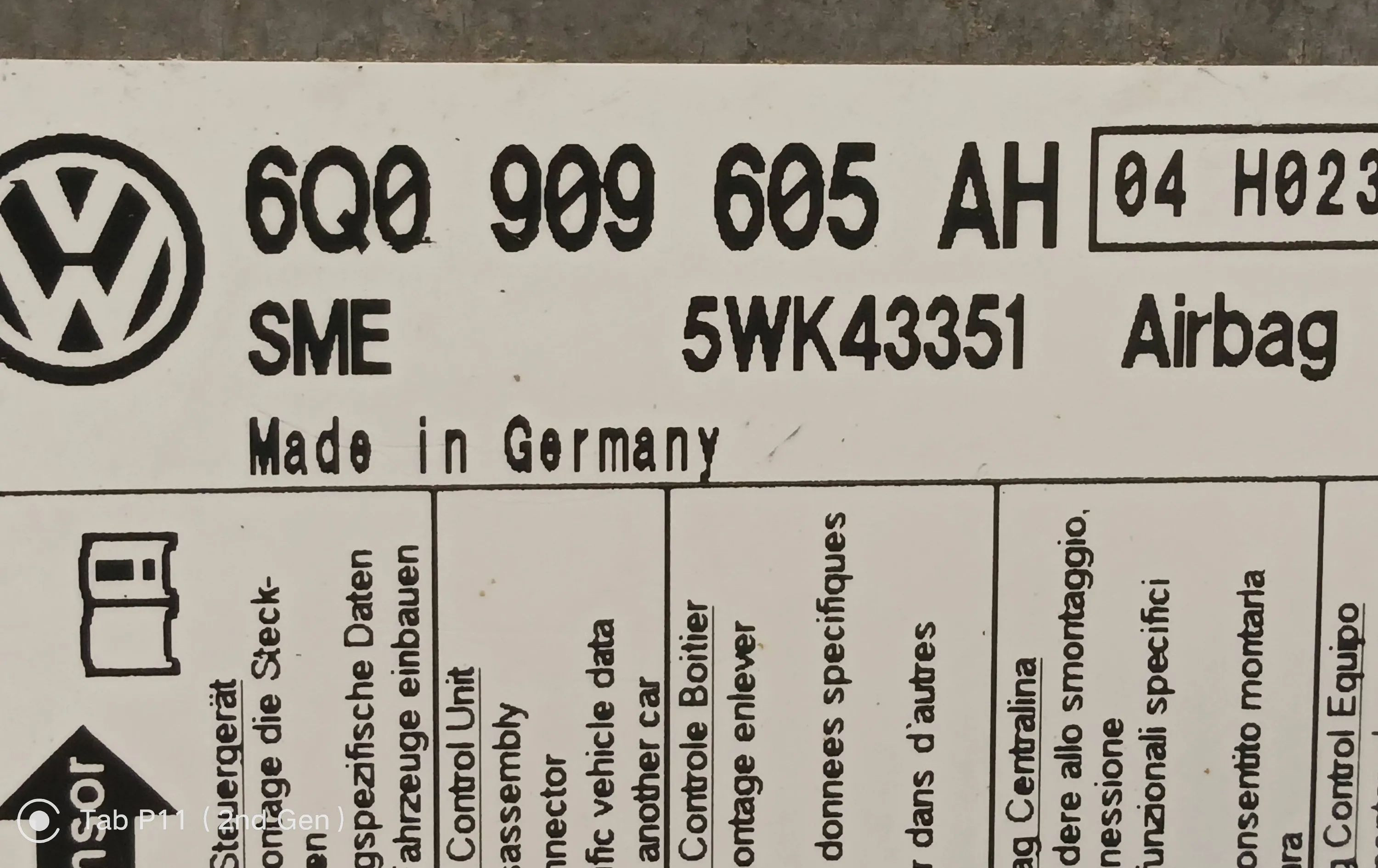 - Код производителя: 6Q0909605AH