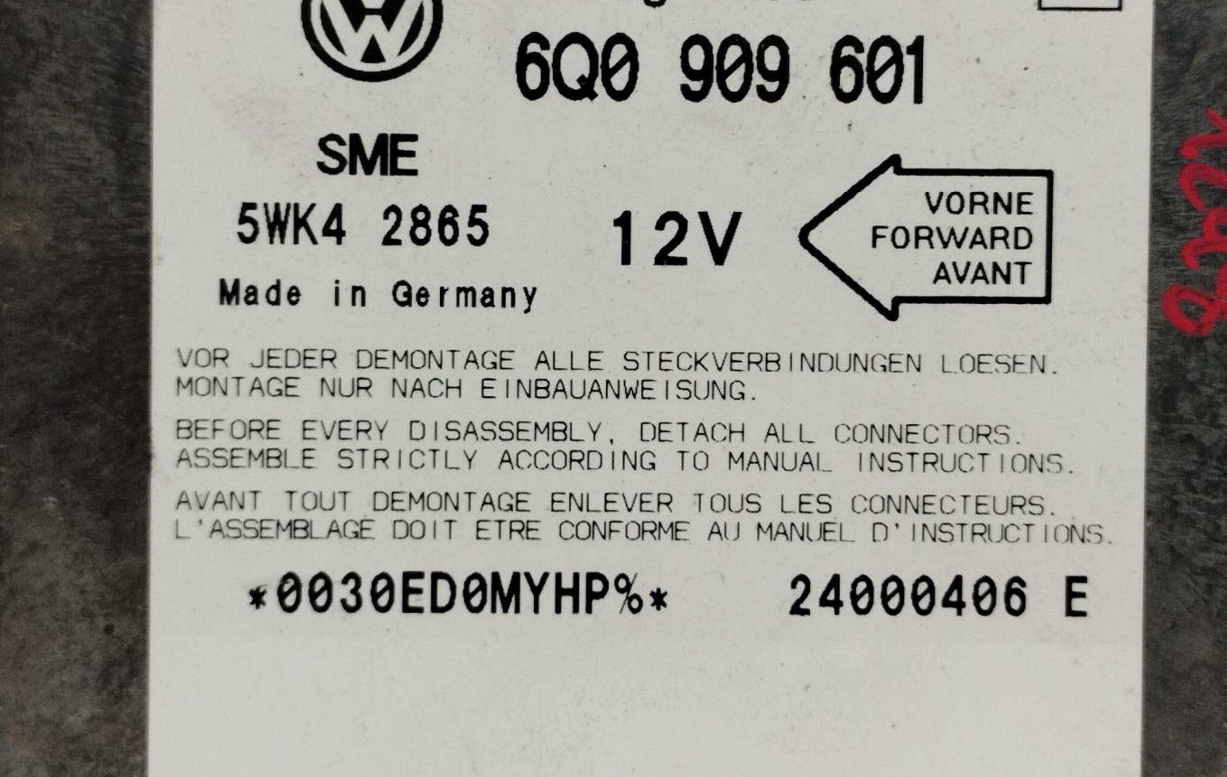 - Код производителя: 6Q0909601