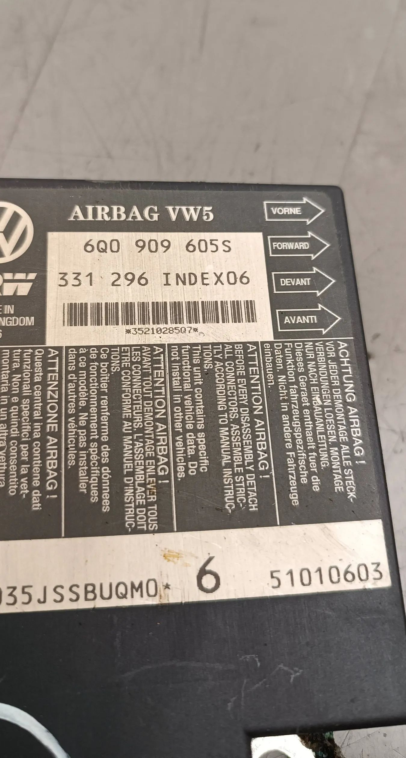 Блок подушек безопасности 6Q0909605S, 51010603 Volkswagen Polo