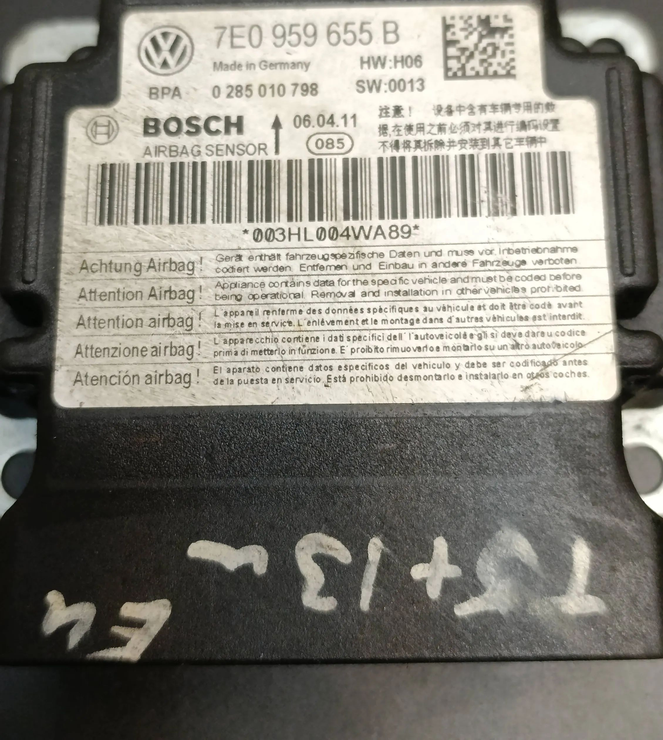 Блок подушек безопасности 7E0959655B, 0285010798 Volkswagen Transporter - Caravelle T5