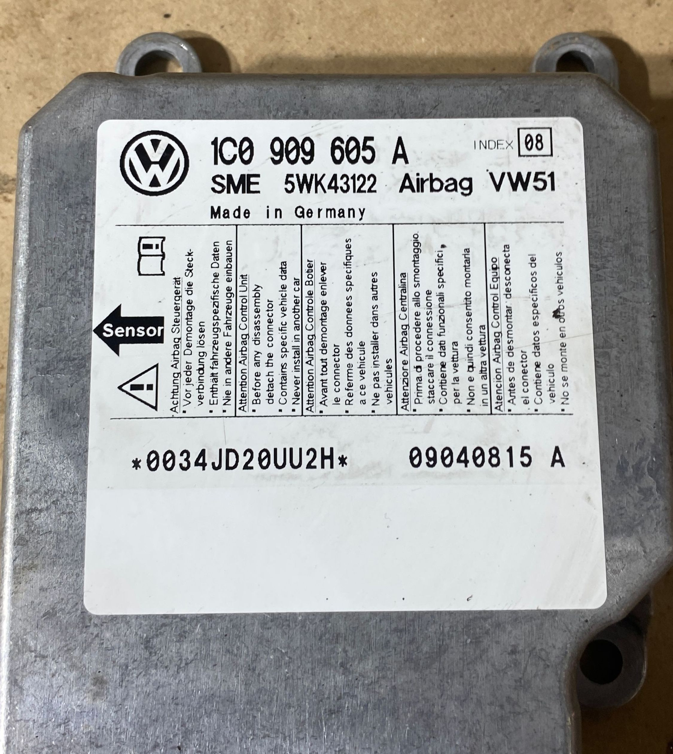 Блок подушек безопасности 1C0909605A, 0034JD20UU2H Volkswagen Transporter - Caravelle T5