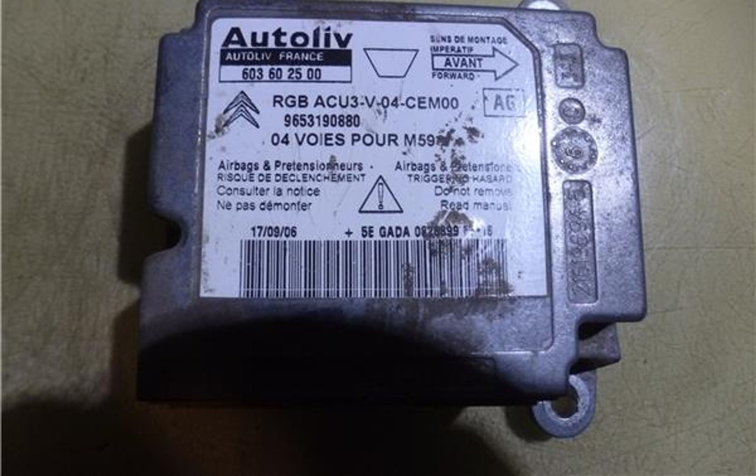 Блок подушек безопасности 603602500, 9653190880 Citroen Berlingo