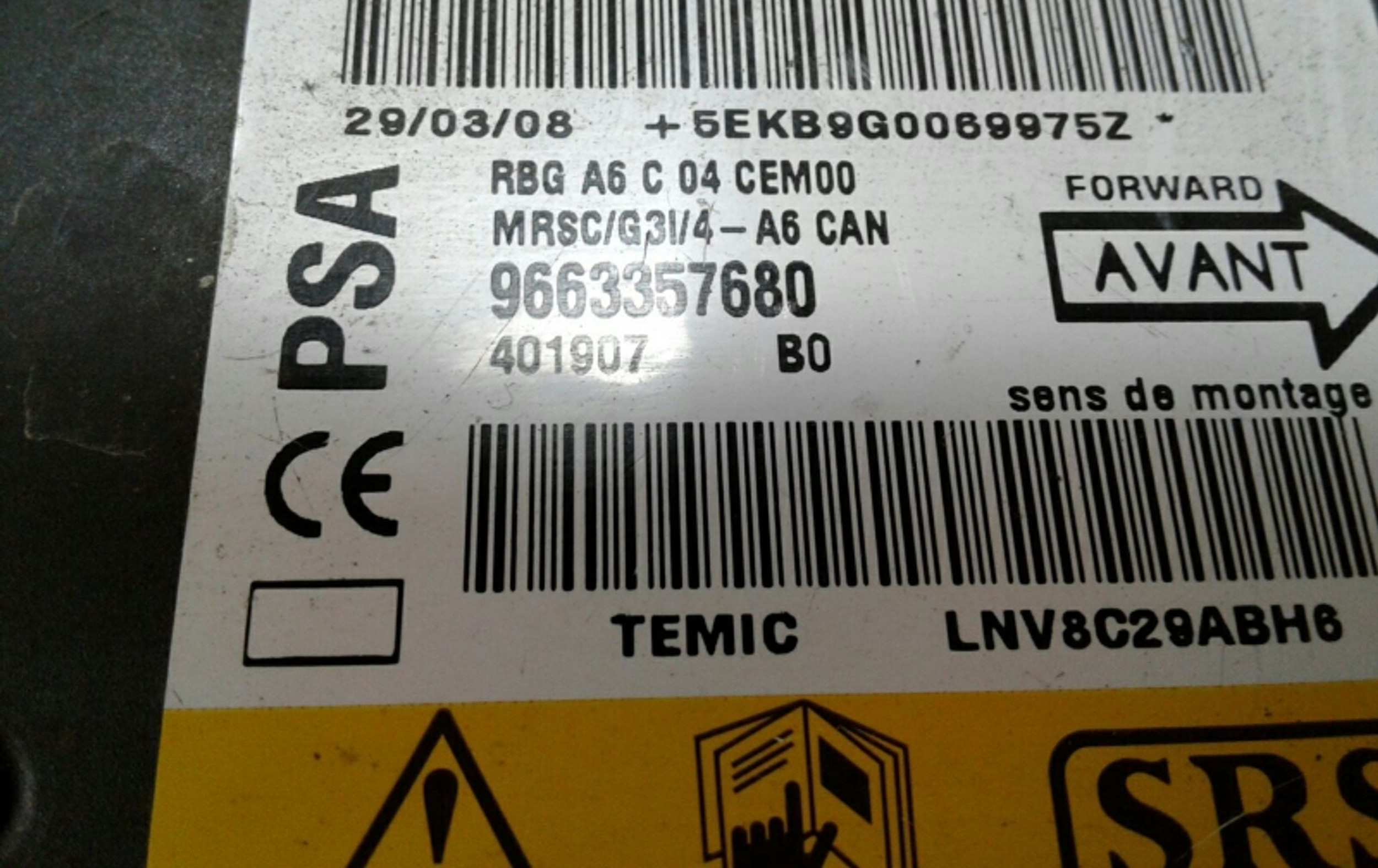 Блок подушек безопасности 9663357680 Citroen C2