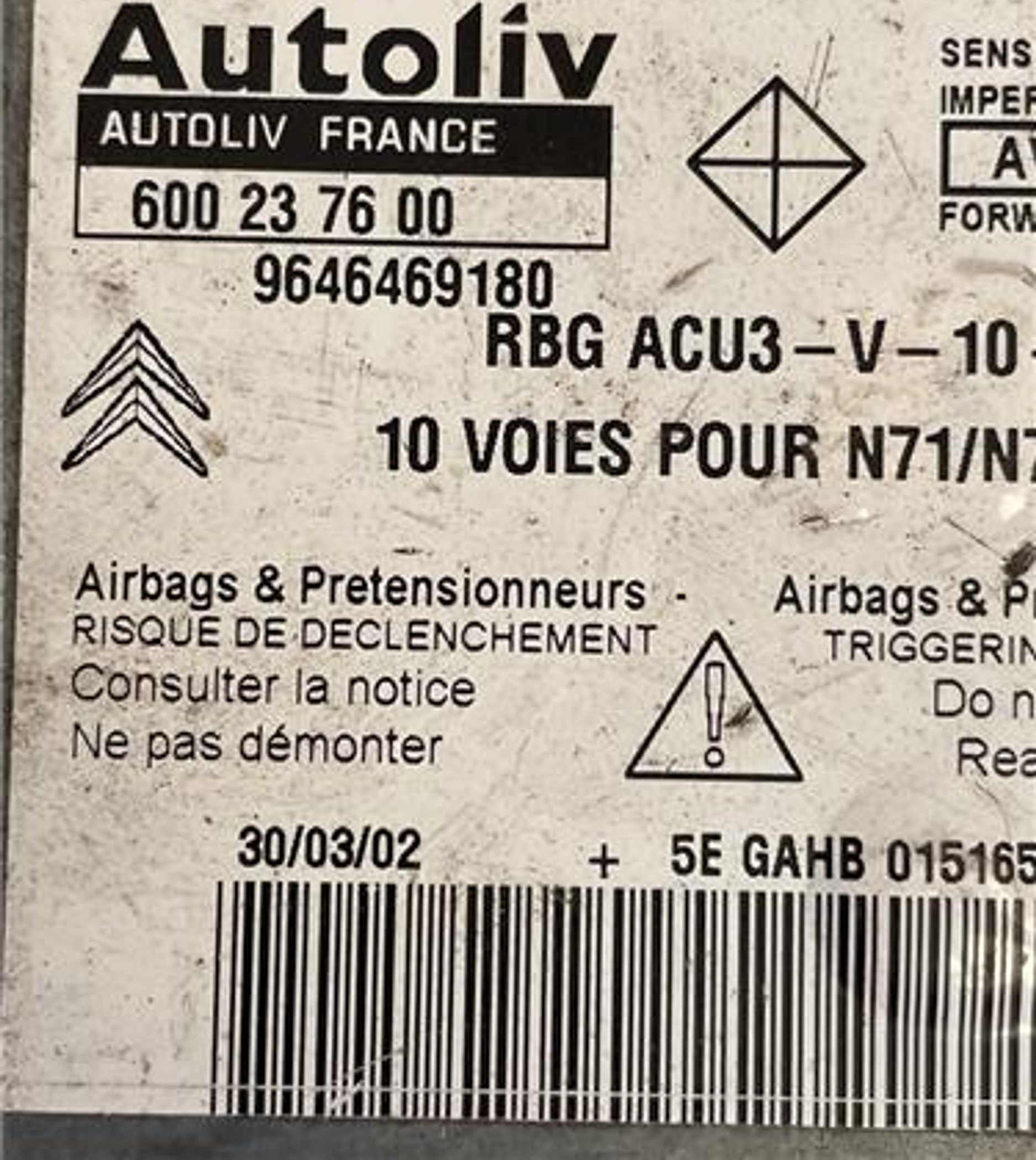 Блок подушек безопасности 9646469180, 9646469180 Citroen Xsara Picasso