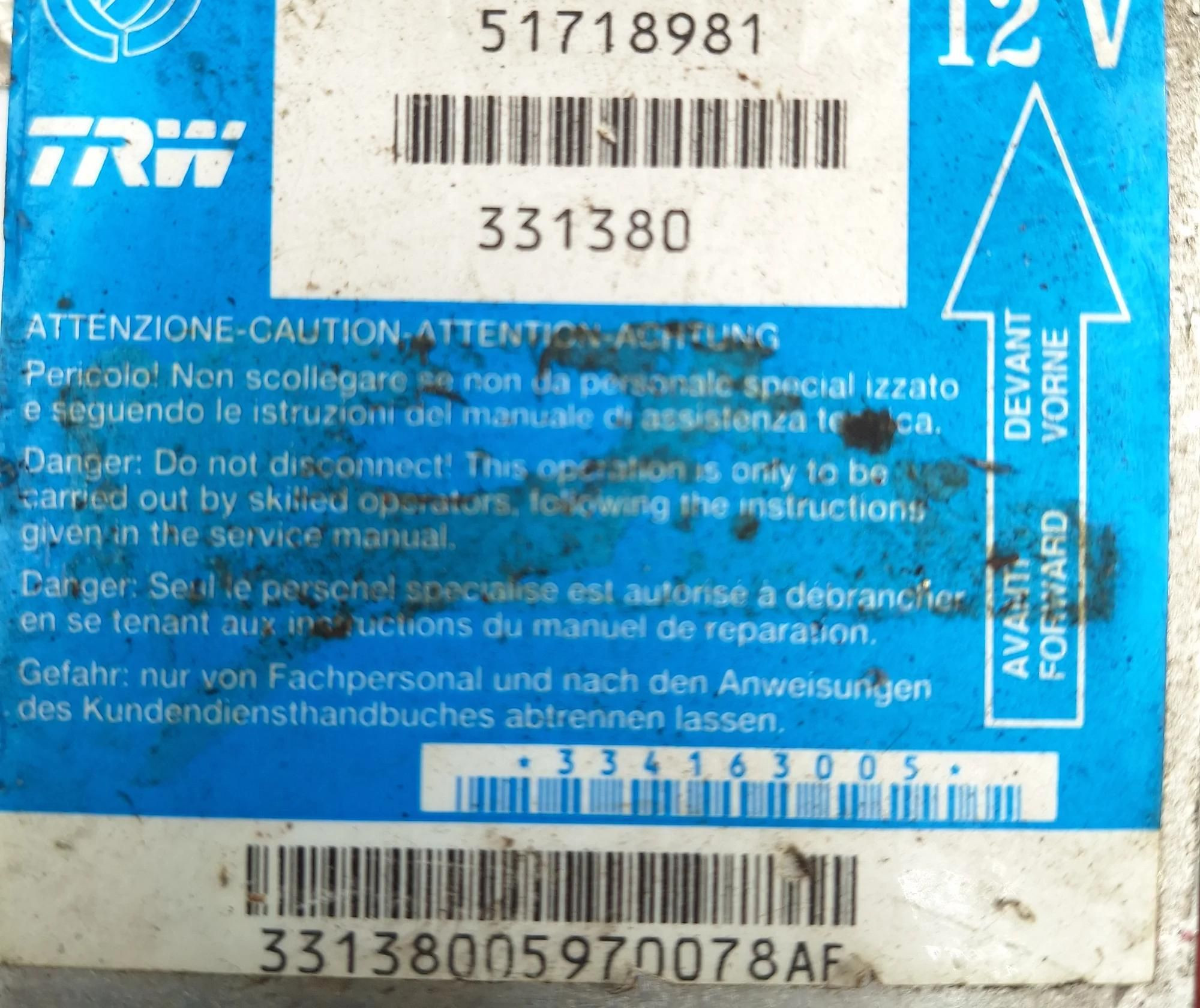 Блок подушек безопасности 51718981, 331380 Fiat Albea
