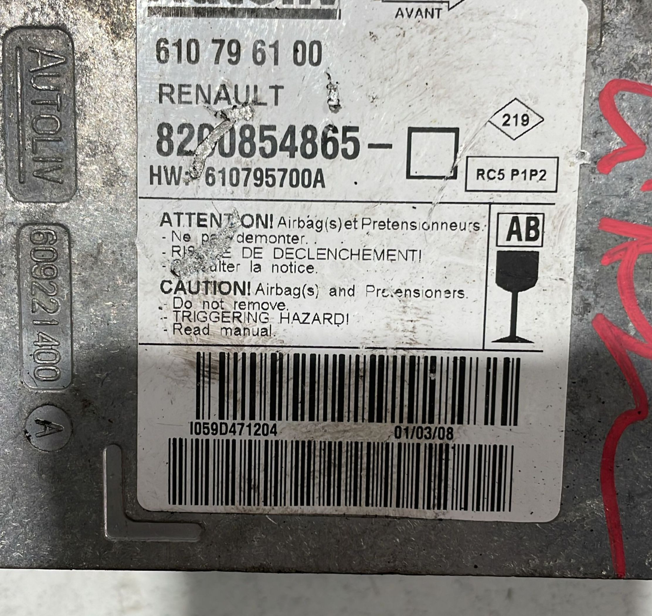 Блок подушек безопасности 8200854865, 8200854865 Renault Clio III