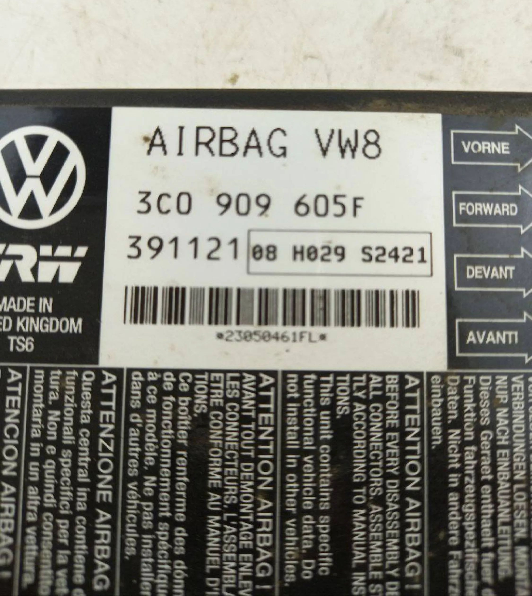 Блок подушек безопасности 3C0909605F, 391121 Volkswagen PASSAT B6