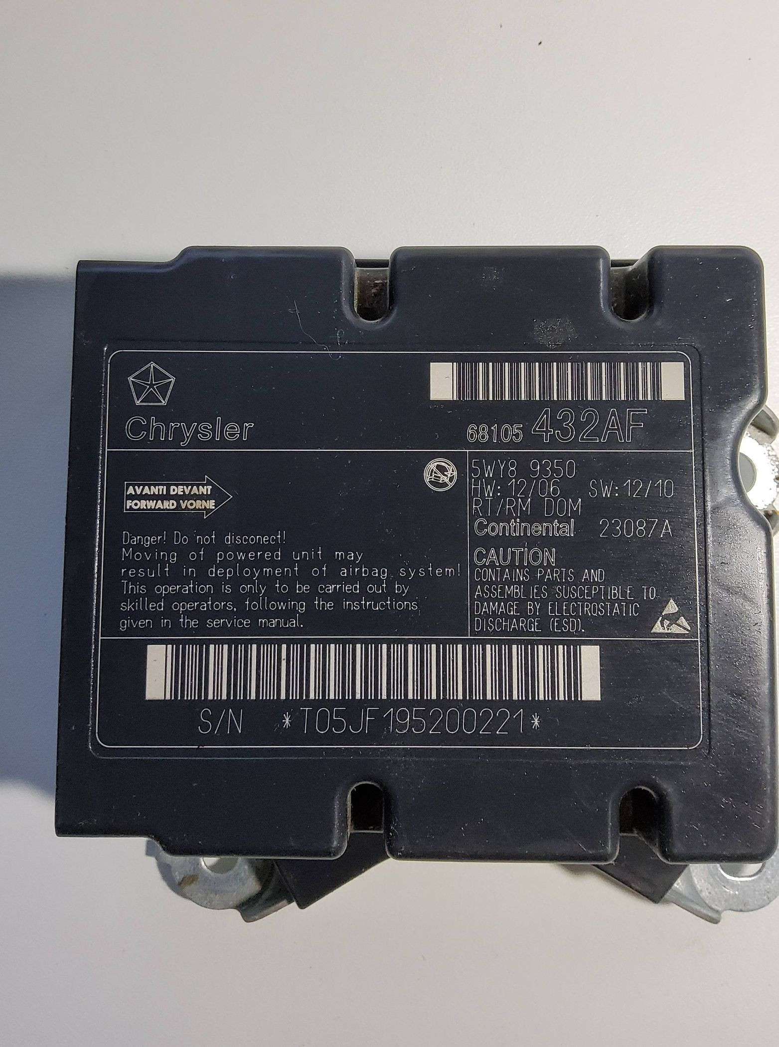 Блок подушек безопасности 68105432AF, 5WY89350 Chrysler Town & Country V