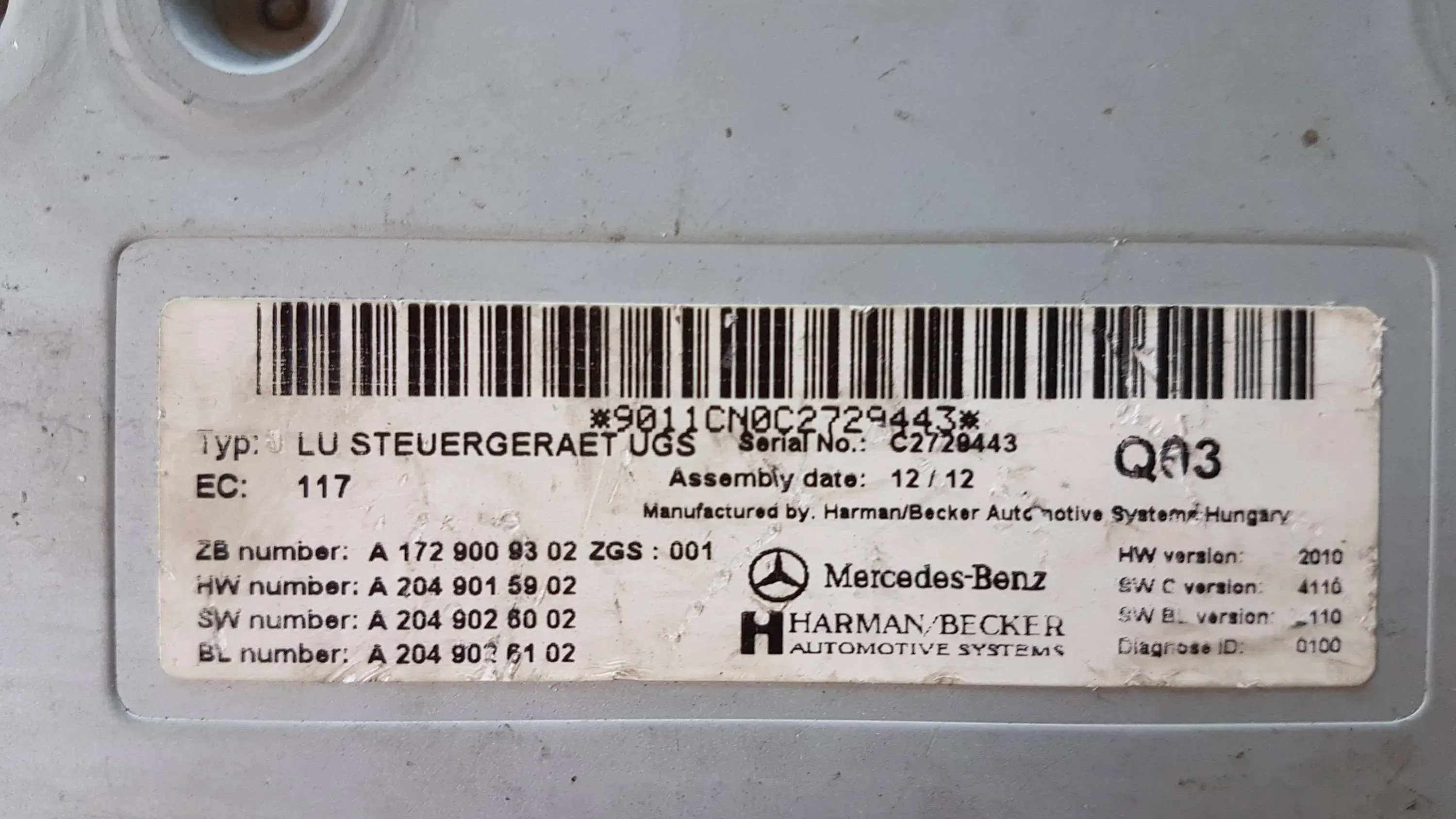 Блок управления A1729009302, A2049015902 Mercedes-Benz GLK (X204)