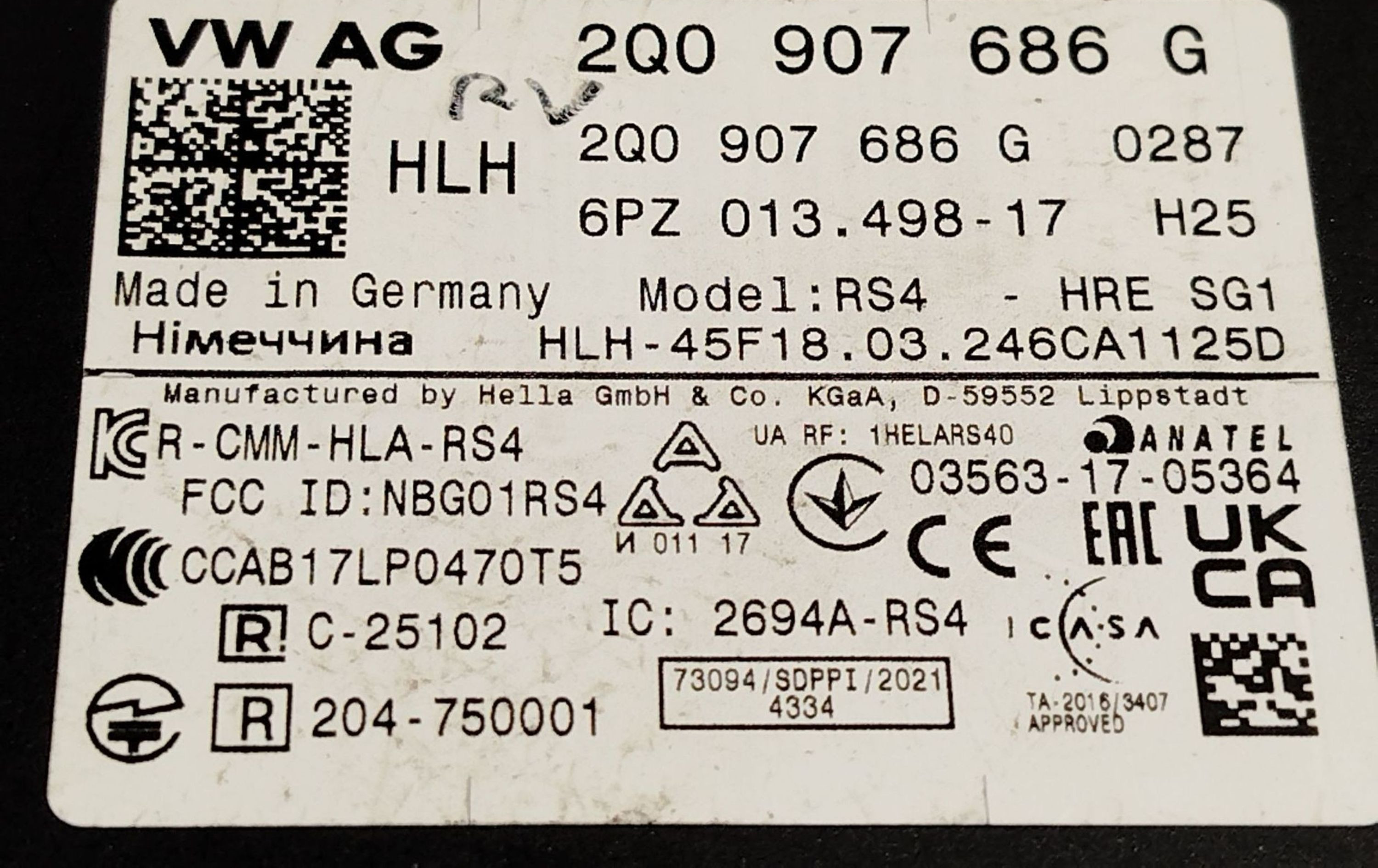 - Код производителя: 2Q0907686G