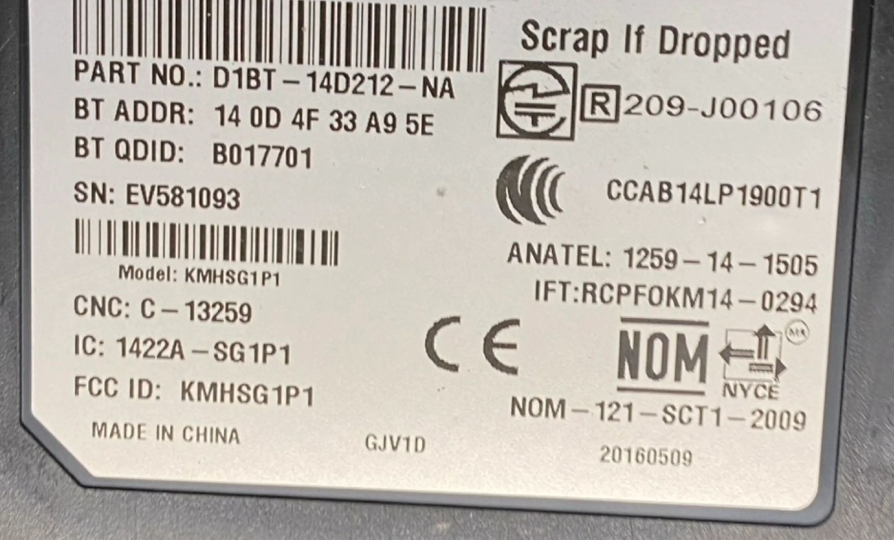Блок управления D1BT14D212NA, 140D4F33A95E Ford B-MAX