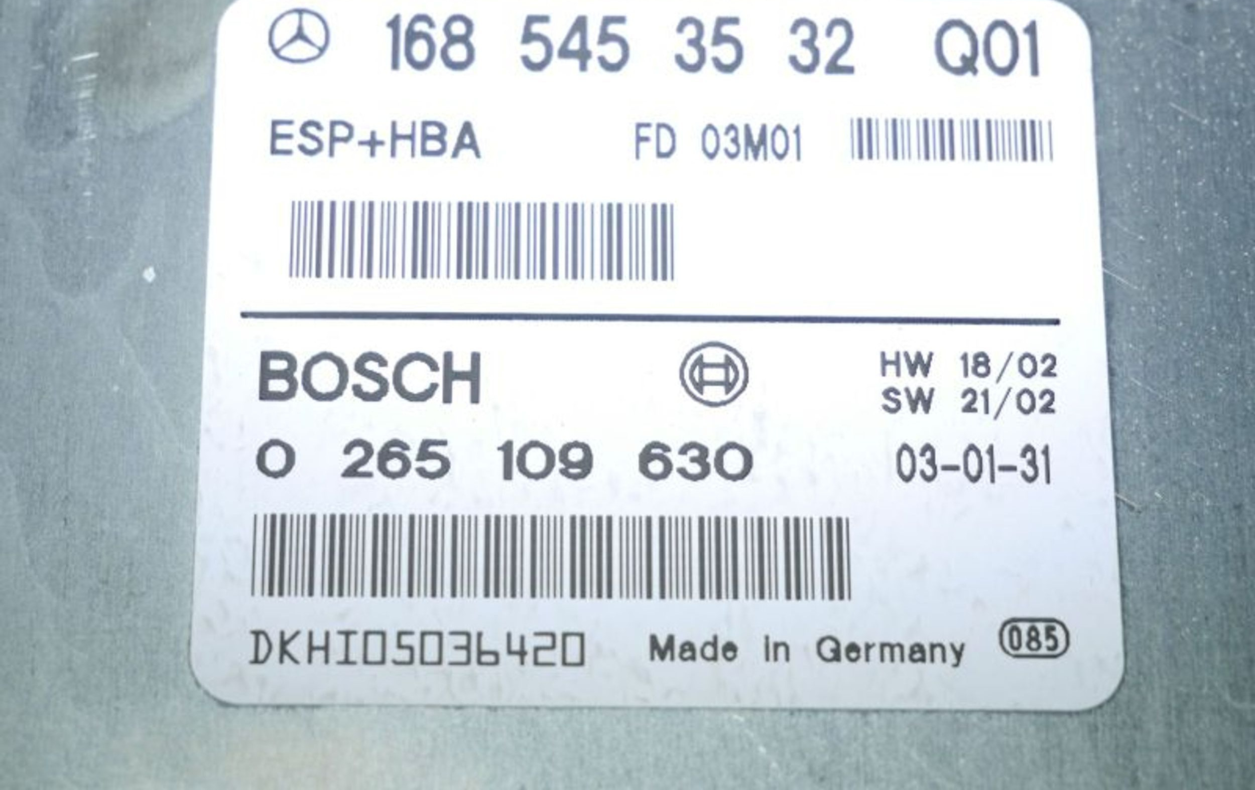 Блок управления 0265109630, 0265109630 Mercedes-Benz A W168