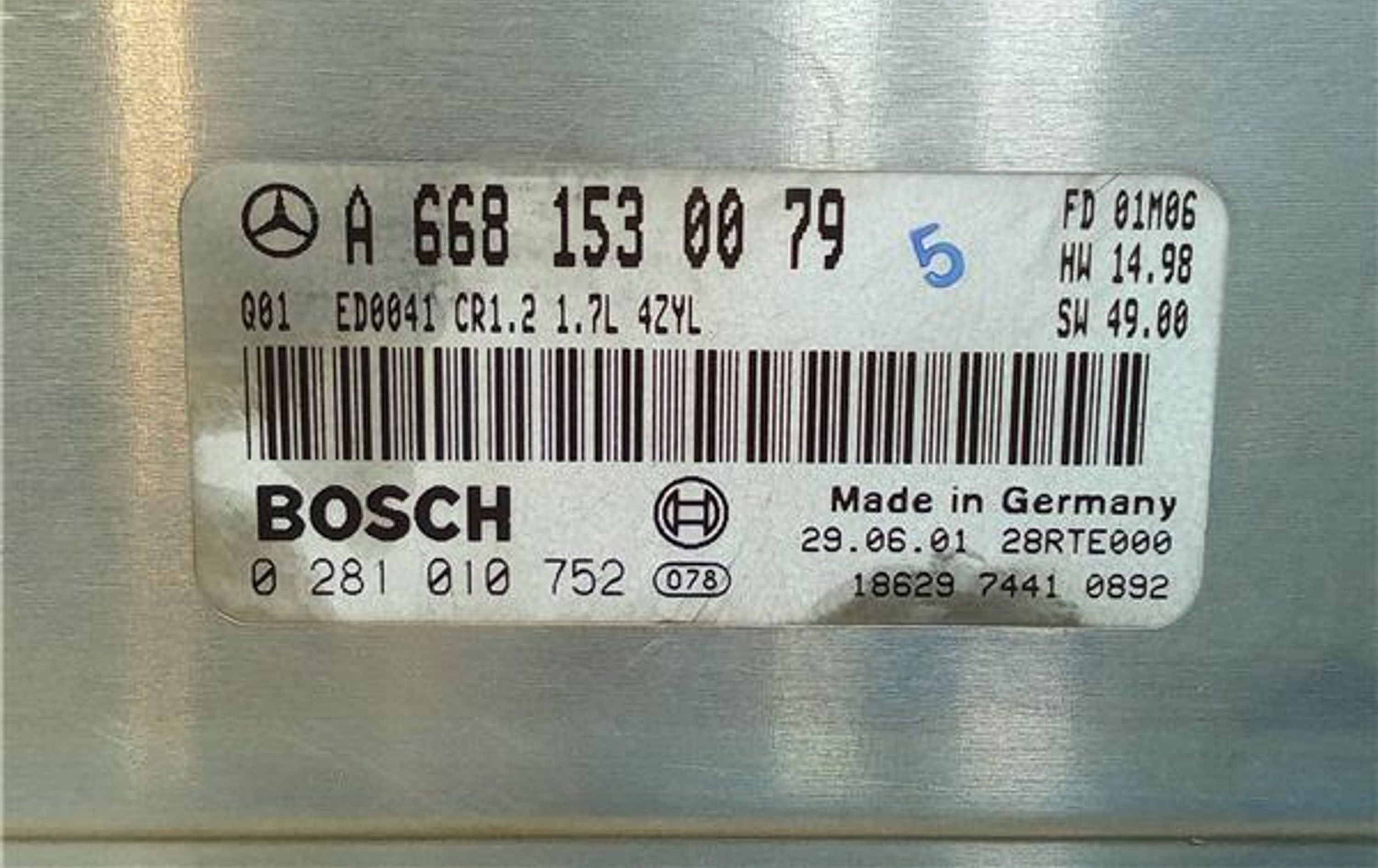Блок управления A6681530079, 0281010752 Mercedes-Benz A W168