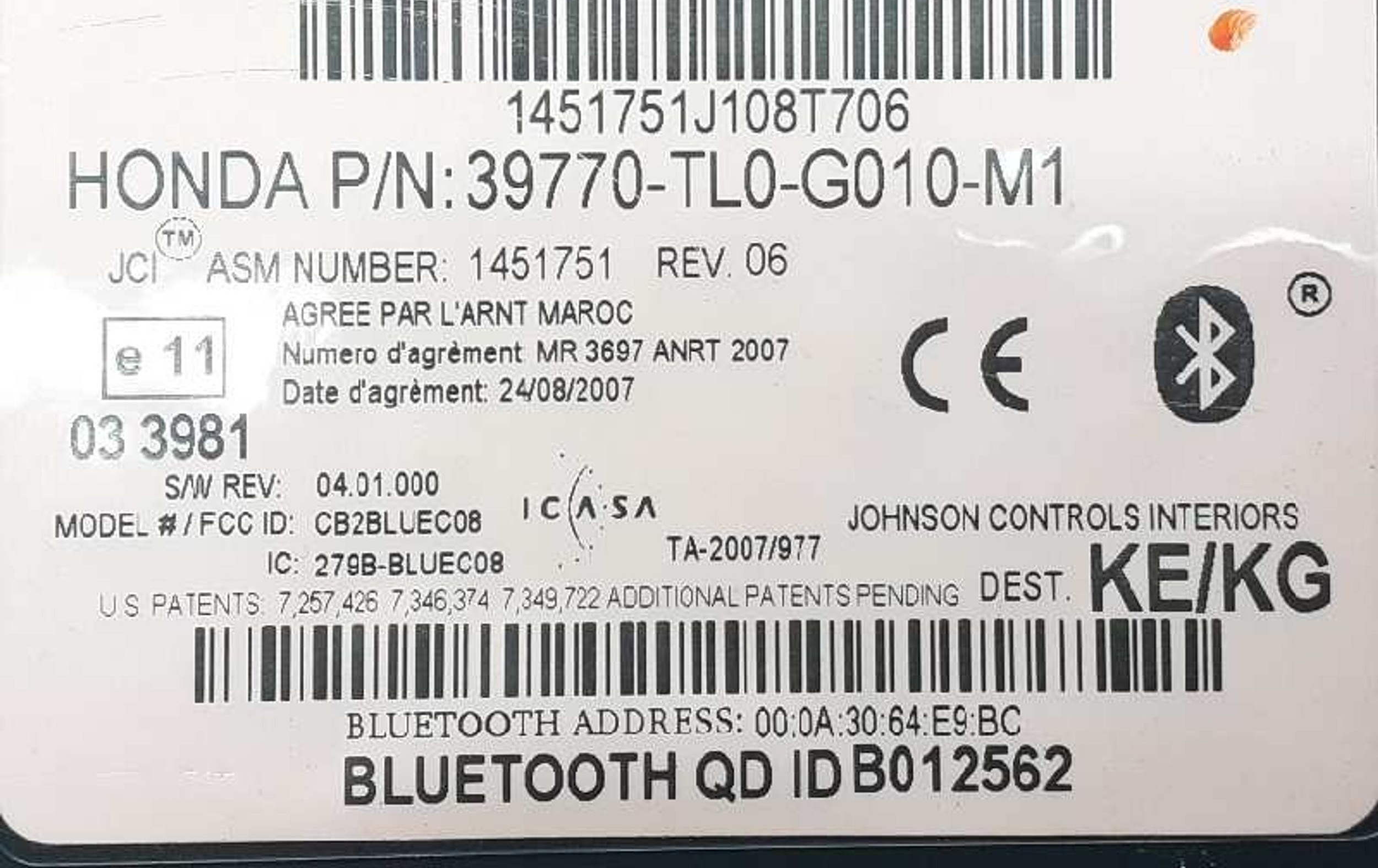 Блок управления 39770TL0G010M1, 1451751J108T706 Honda Accord