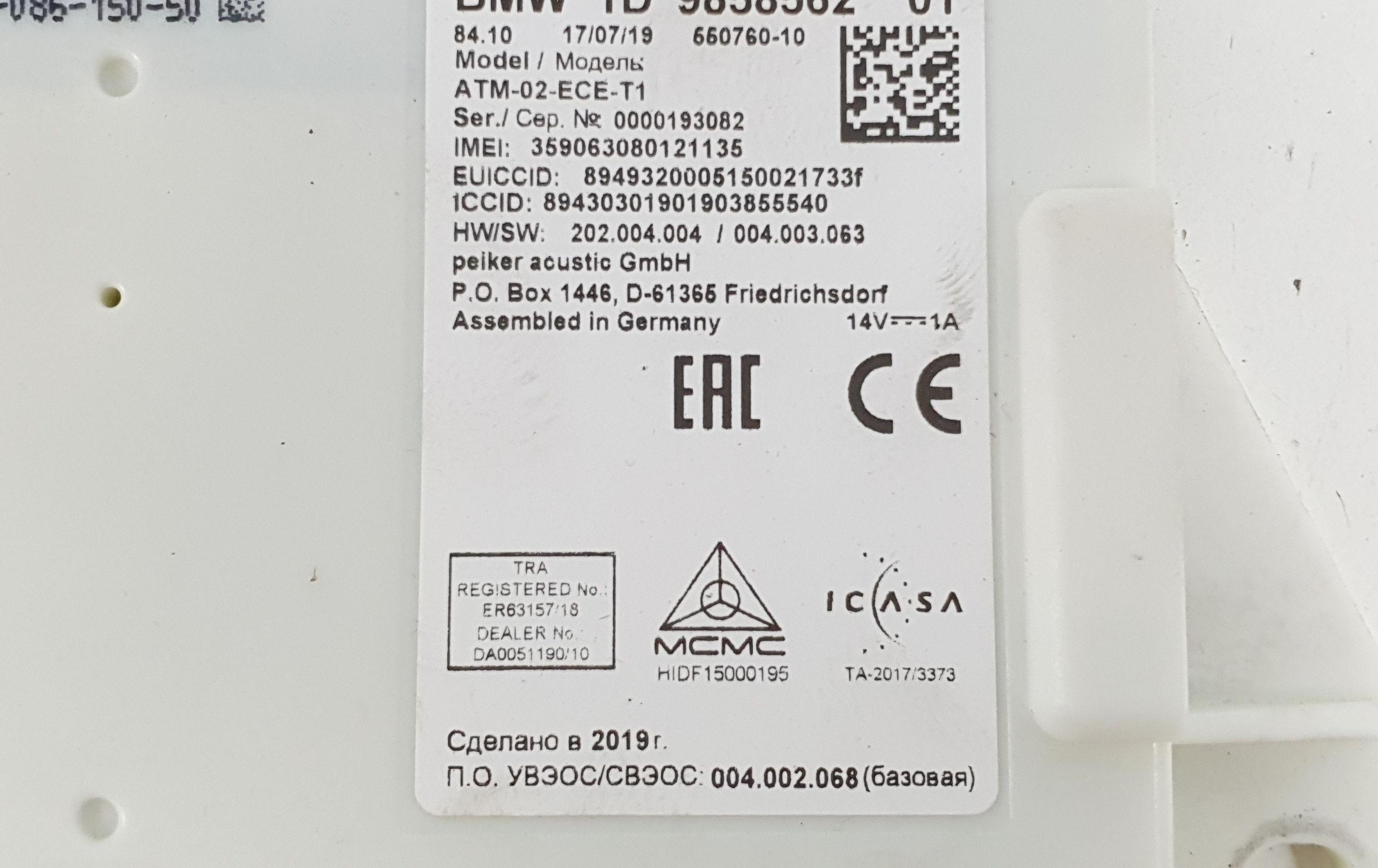 Блок управления 9858562, ATM-02-ECE-T1 BMW Z4 g29