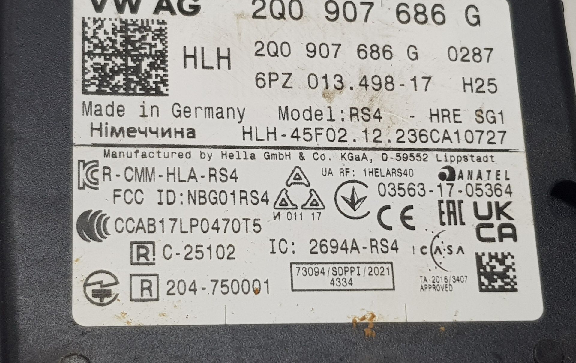 - Код производителя: 2Q0907686G