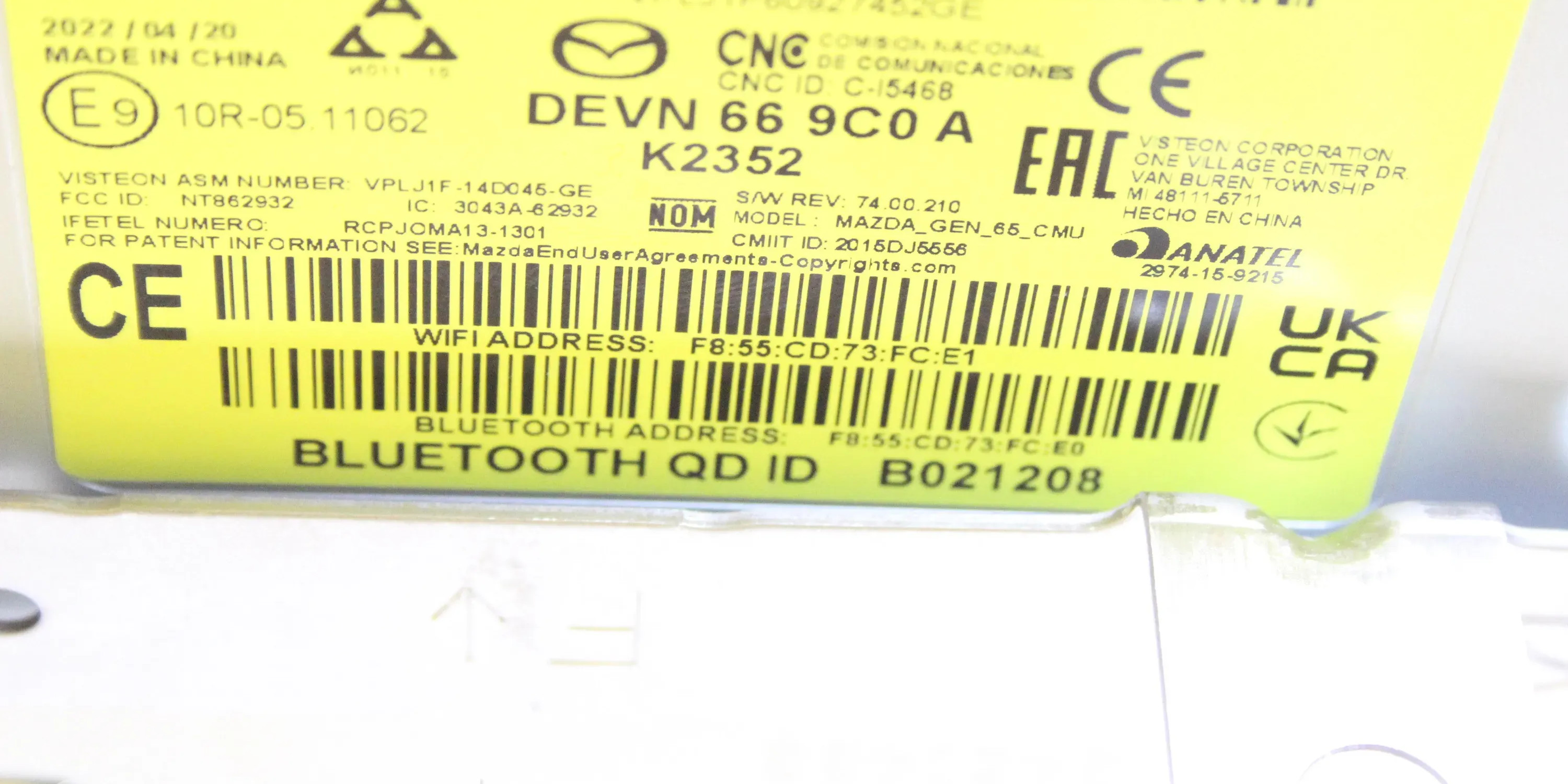 Дисплей DEVN669C0A, BHP1611J00 Mazda 3 II