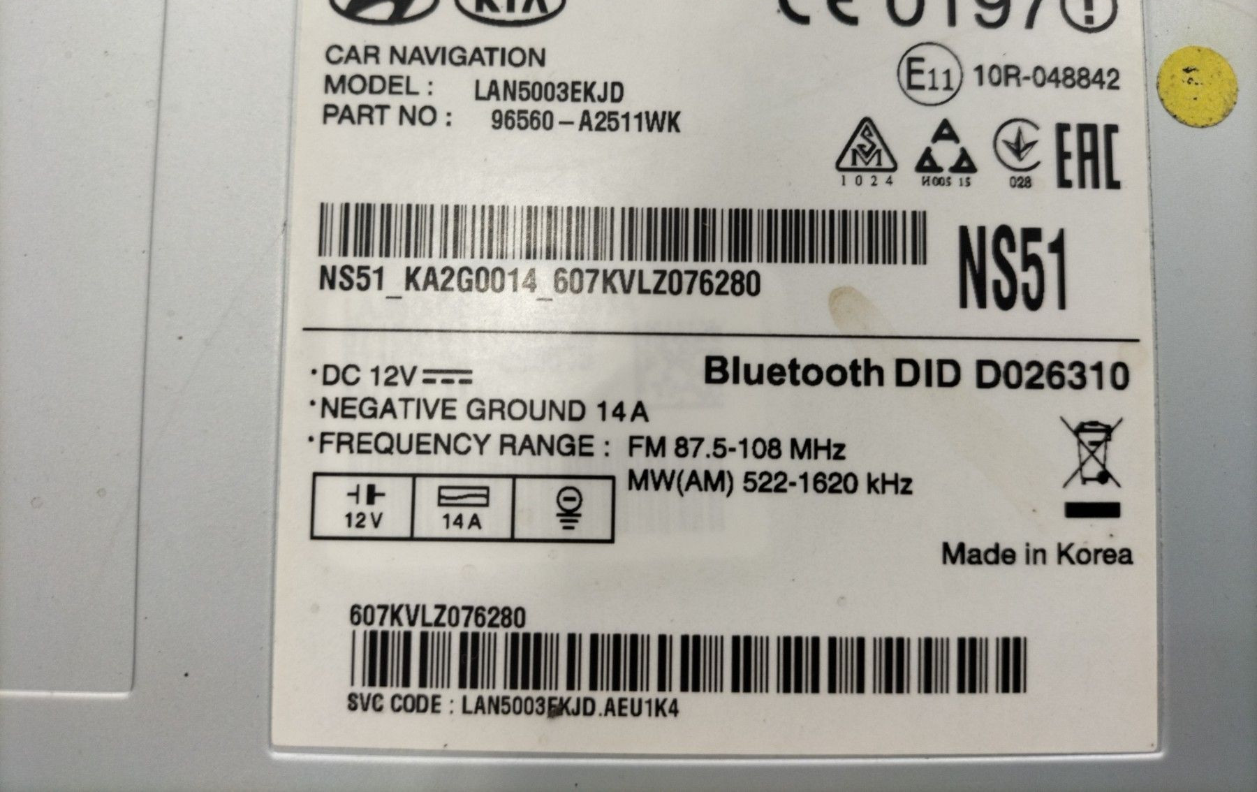 - Код производителя: 96560A2511WK