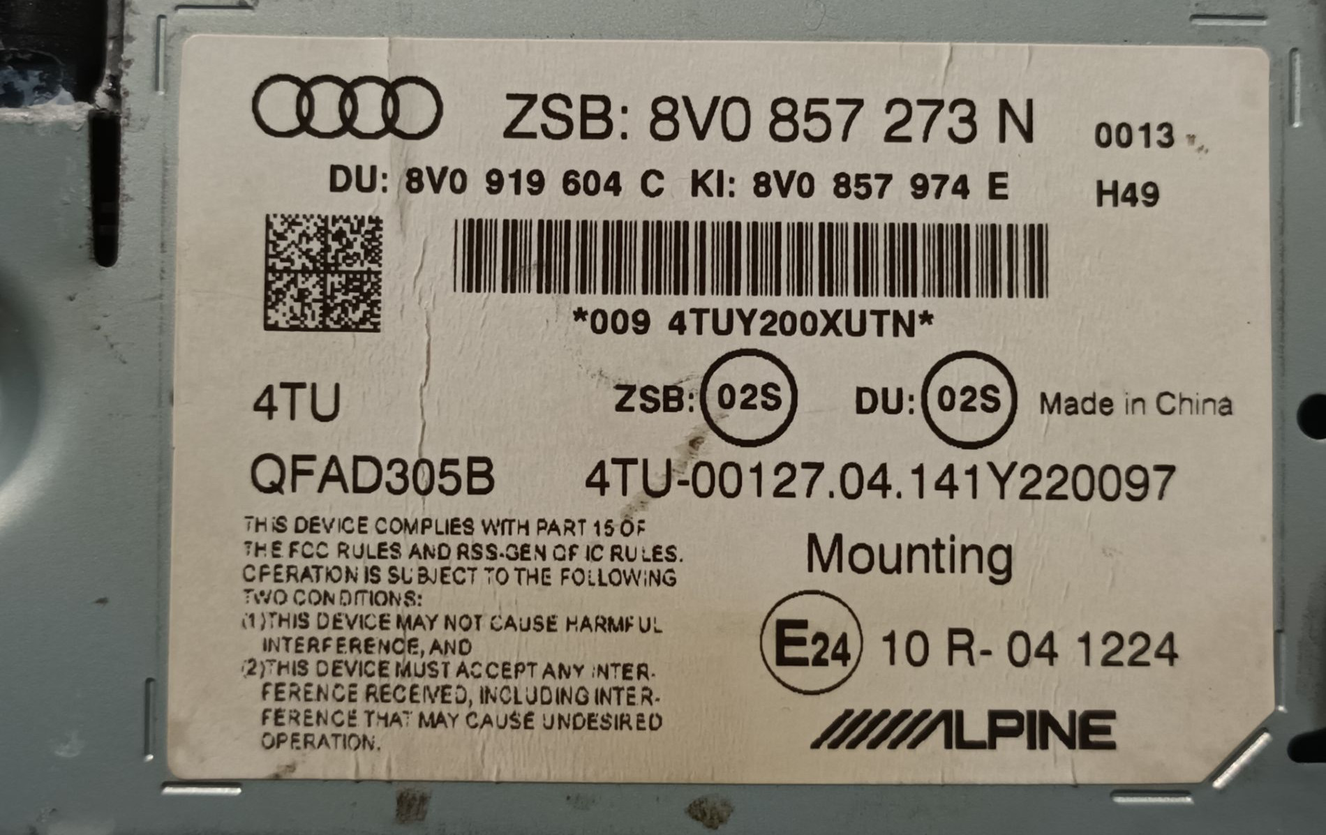 - Код производителя: 8V0919604C