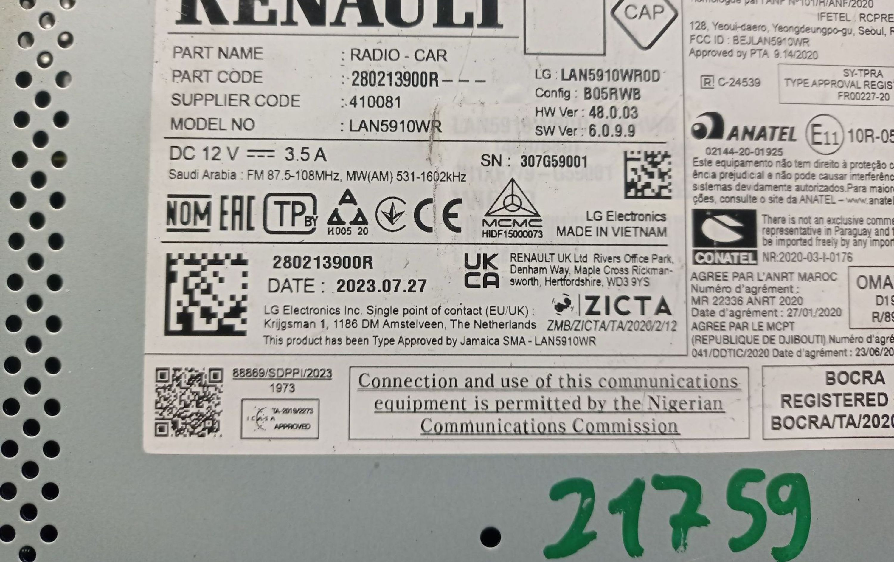 - Код производителя: 280213900R