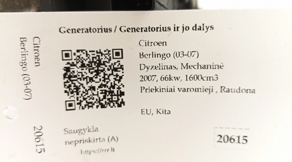 Генератор 9646321780, 407559856 Citroen Berlingo 1.6