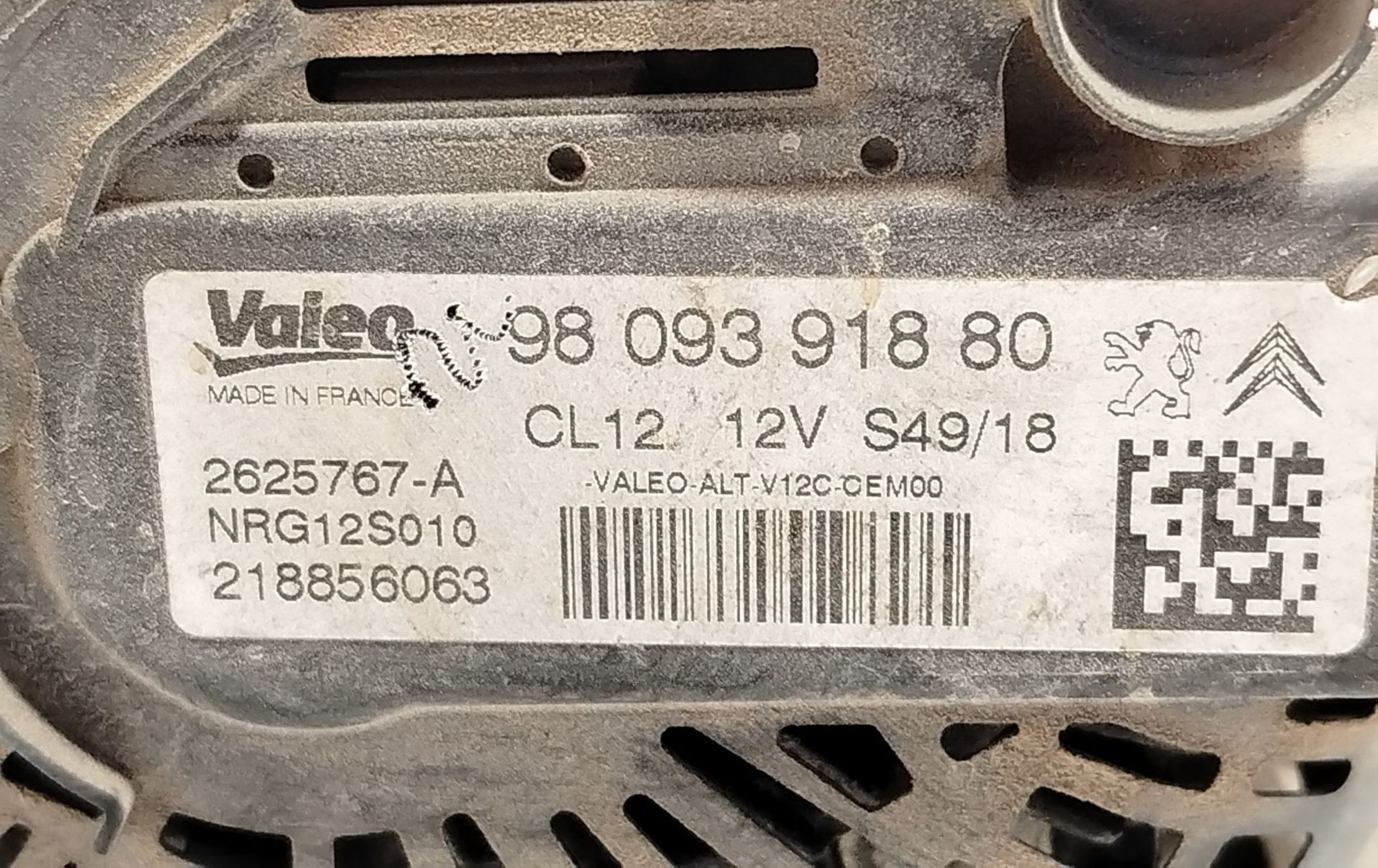 Генератор 9809391880, 2625767A Peugeot 2008 I