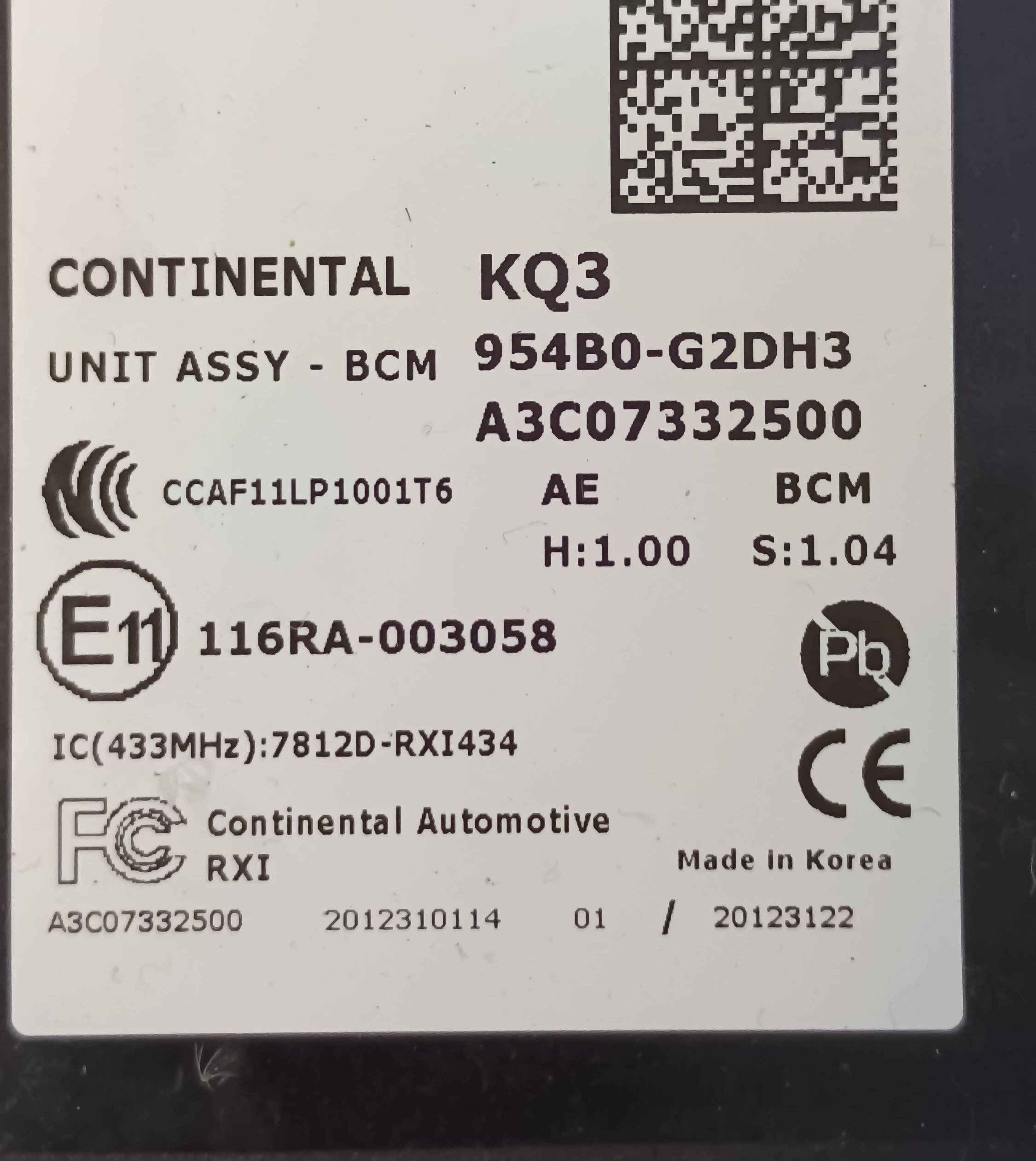 Блок комфорта 954B0G2DH3, 7812DRX1434 Hyundai Ioniq