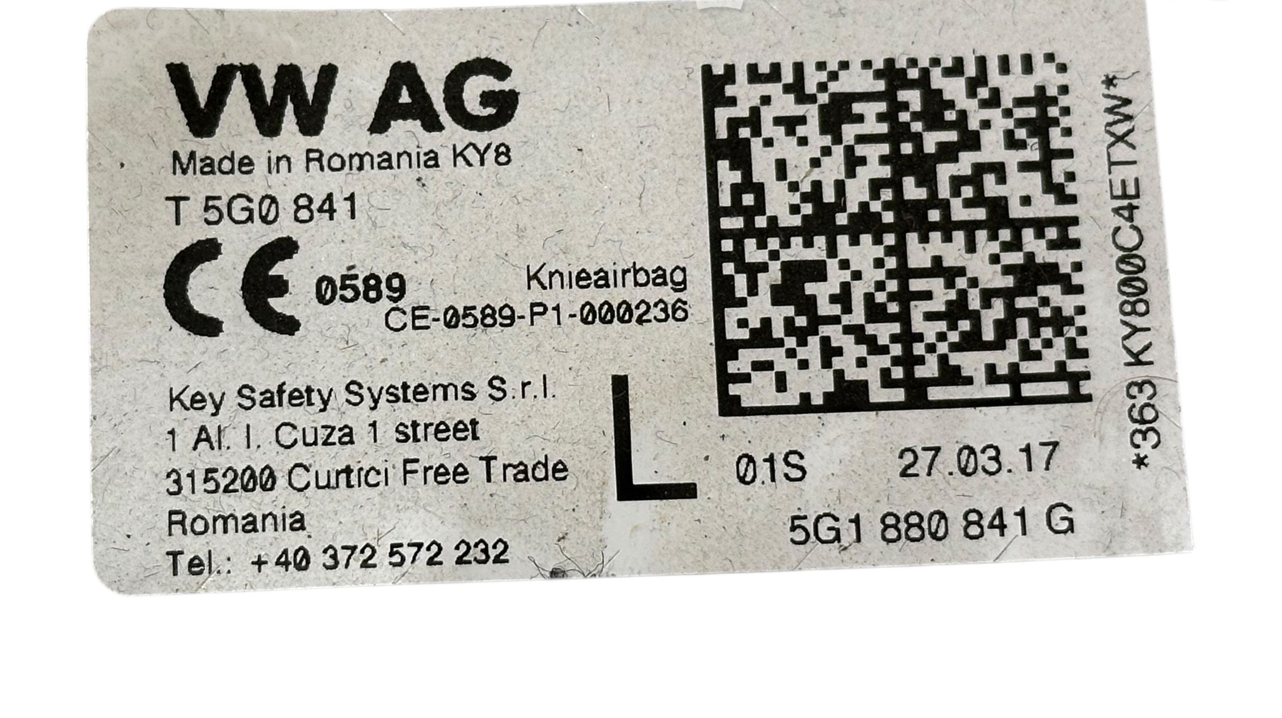 Подушка безопасности для колен 5G1880841G, 40372572232 Volkswagen e-Golf