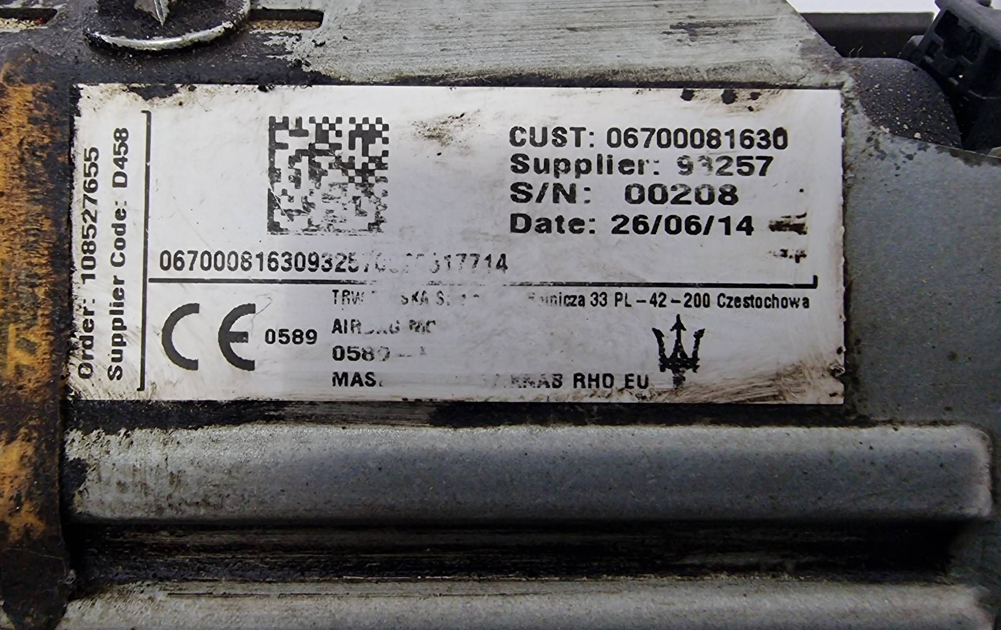 Подушка безопасности для колен 06700081630, 067000816309325 Maserati Ghibli
