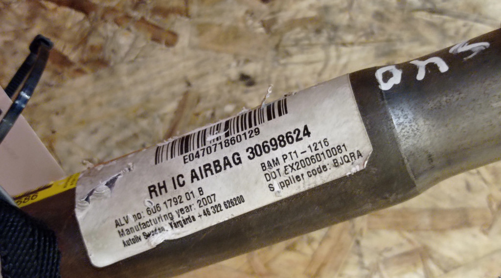 Боковая подушка безопасности 30698624, 606179201B Volvo S40