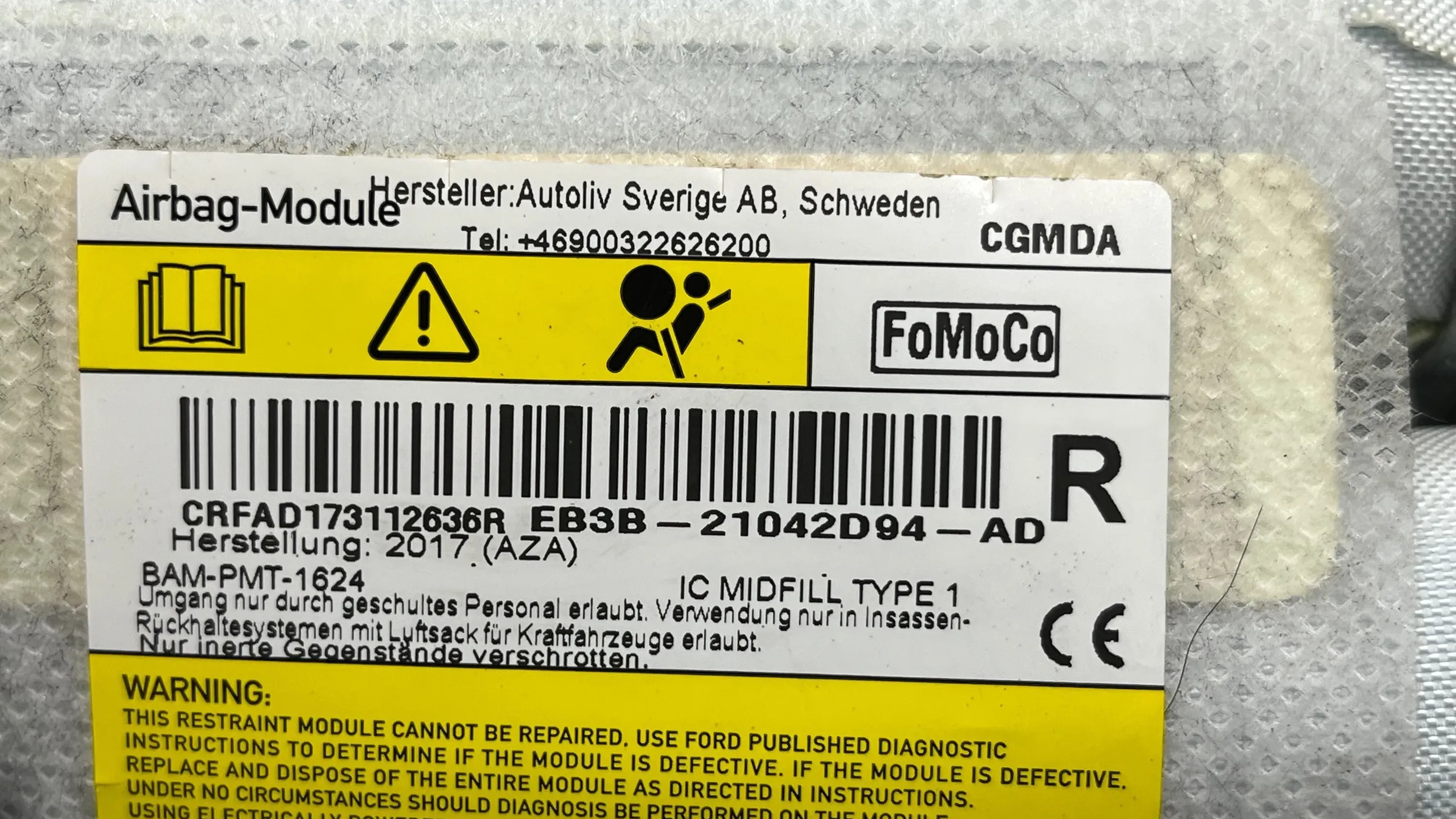 Боковая подушка безопасности eB3B21022D94AD, 46900322626200 Ford Ranger