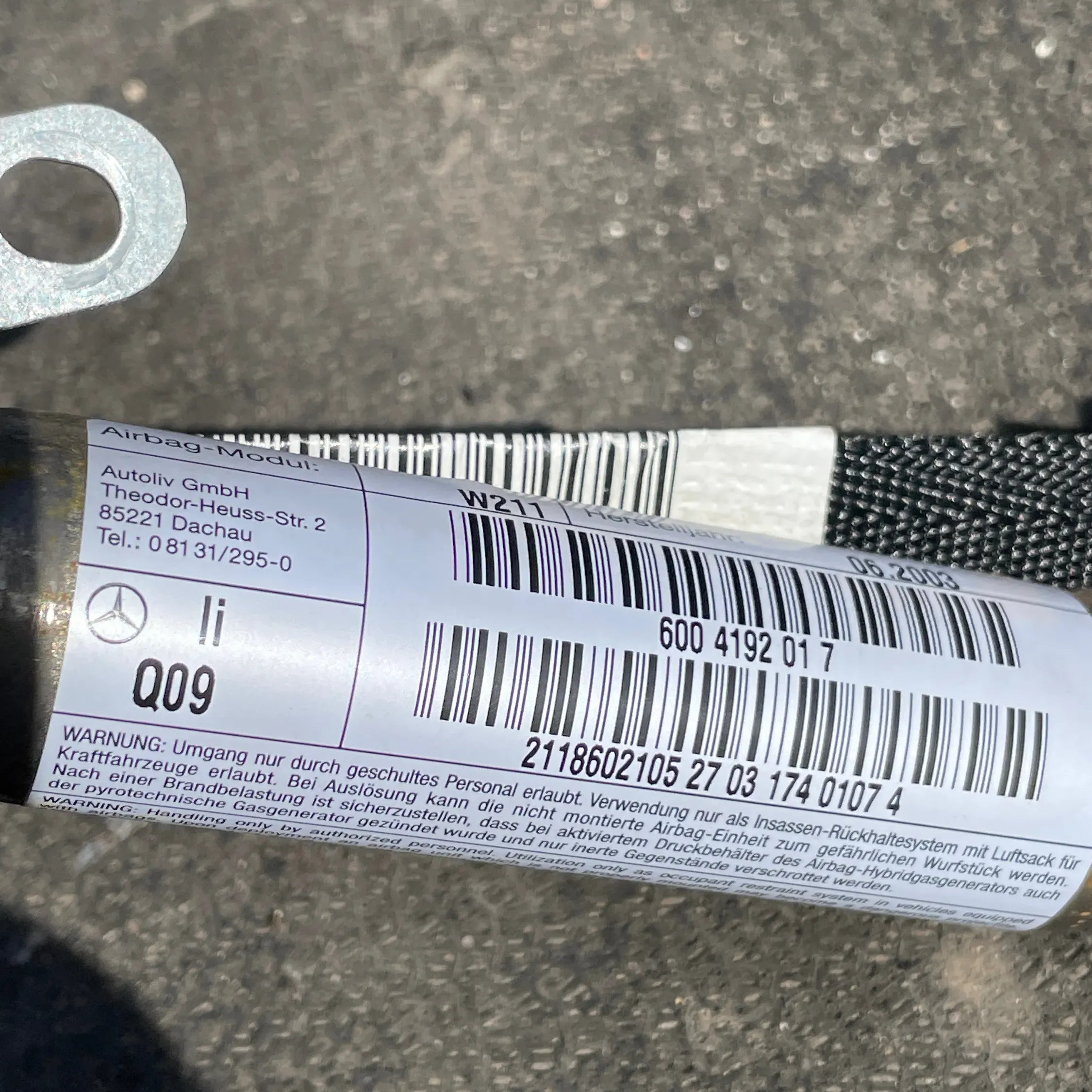 Боковая подушка безопасности 6004192017, 2118602105 Mercedes-Benz E W211