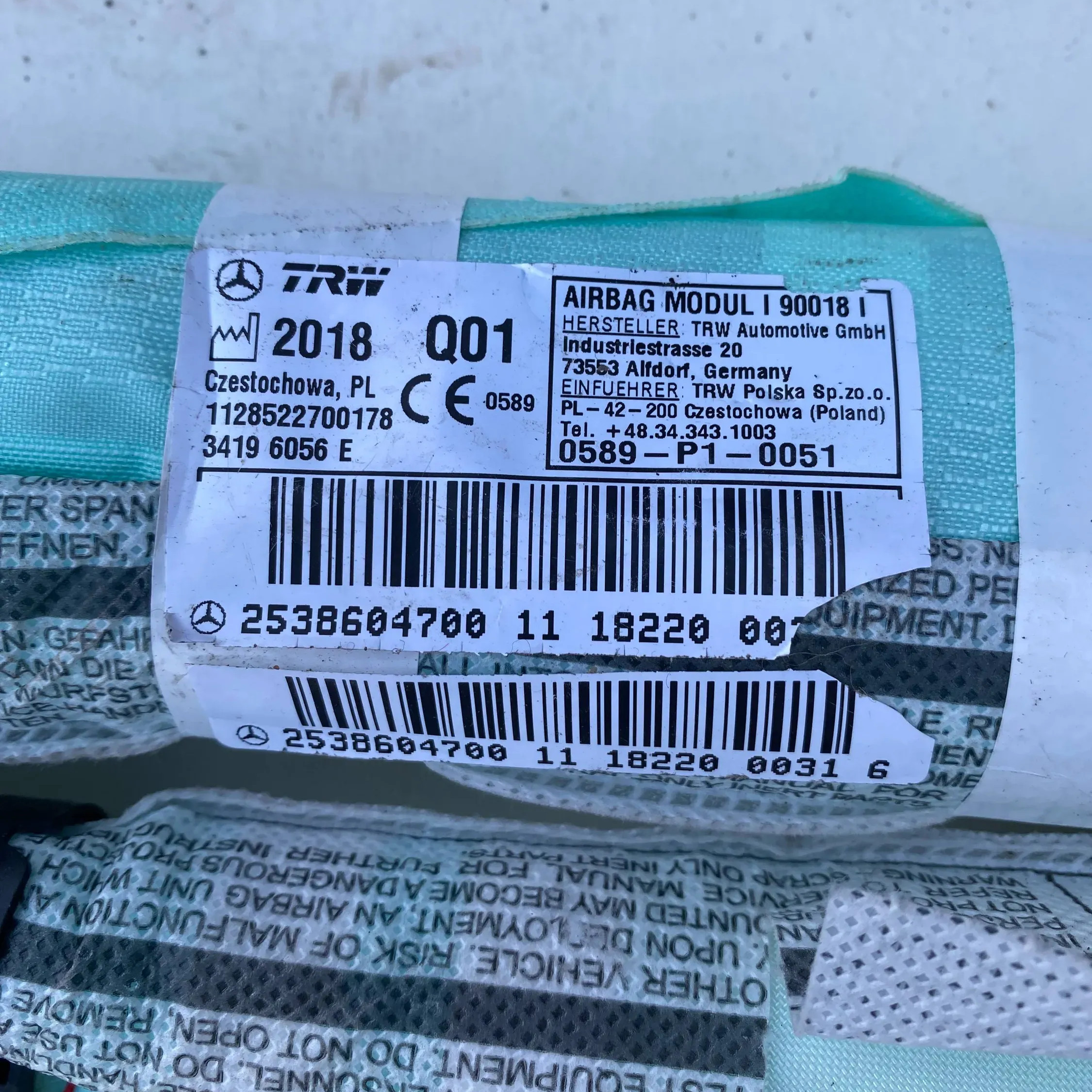 Боковая подушка безопасности 2538604700, 34196056E Mercedes-Benz GLC X253 C253
