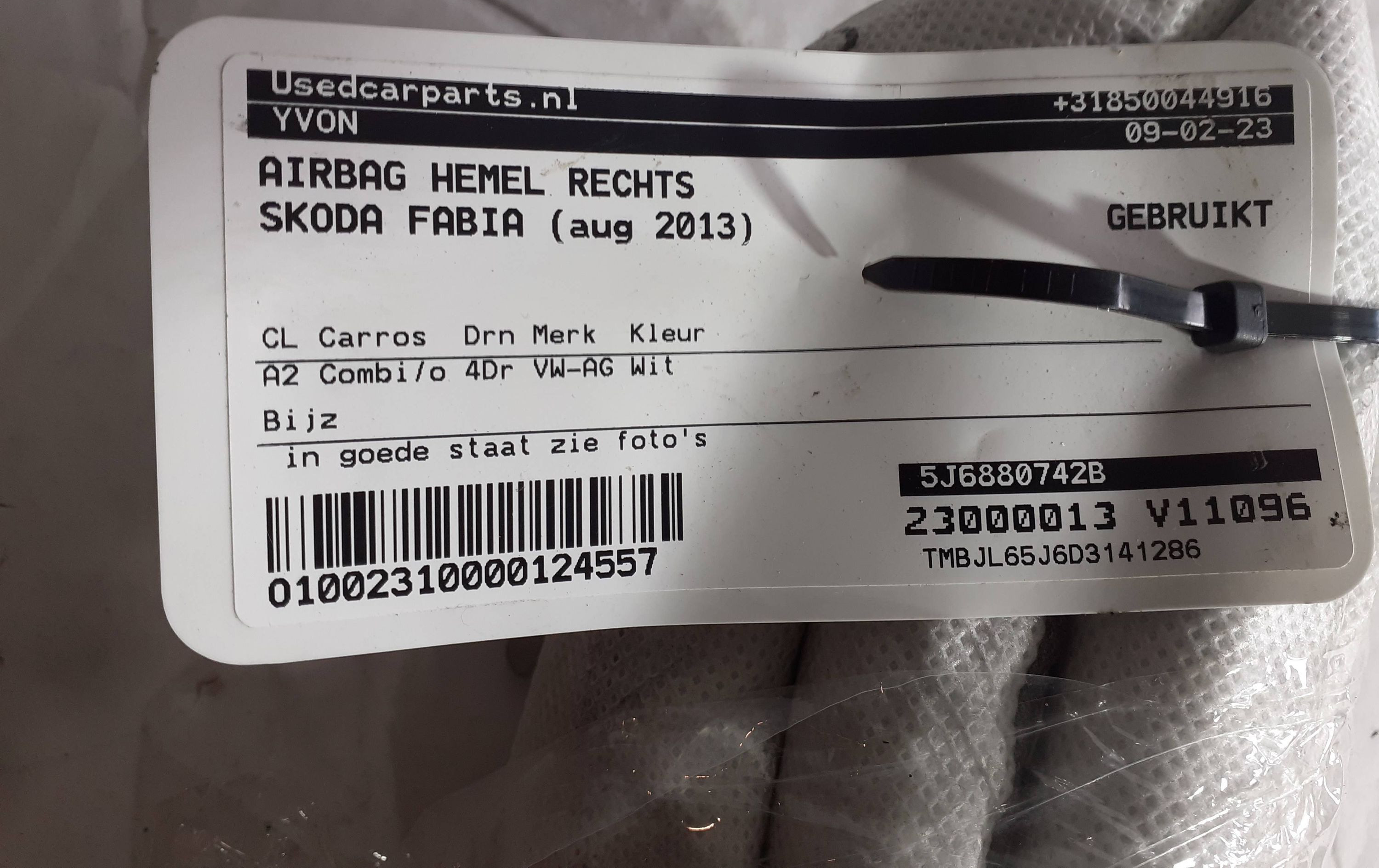 Боковая подушка безопасности 5J6880742B, 23000013 Skoda Fabia Mk2 (5J)