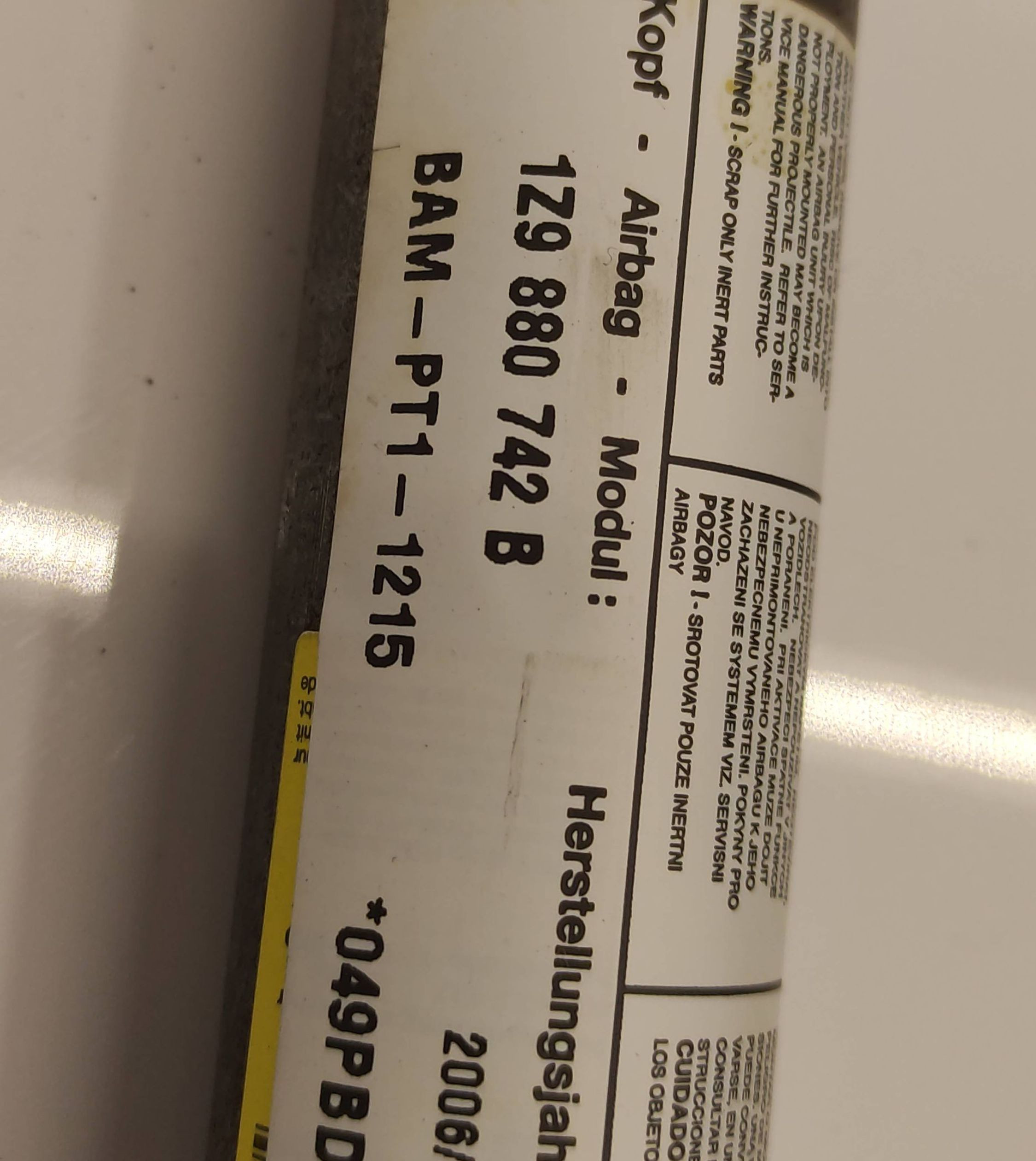 Боковая подушка безопасности 1Z9880742B, BAMPT11215 Skoda Octavia Mk2 (1Z)