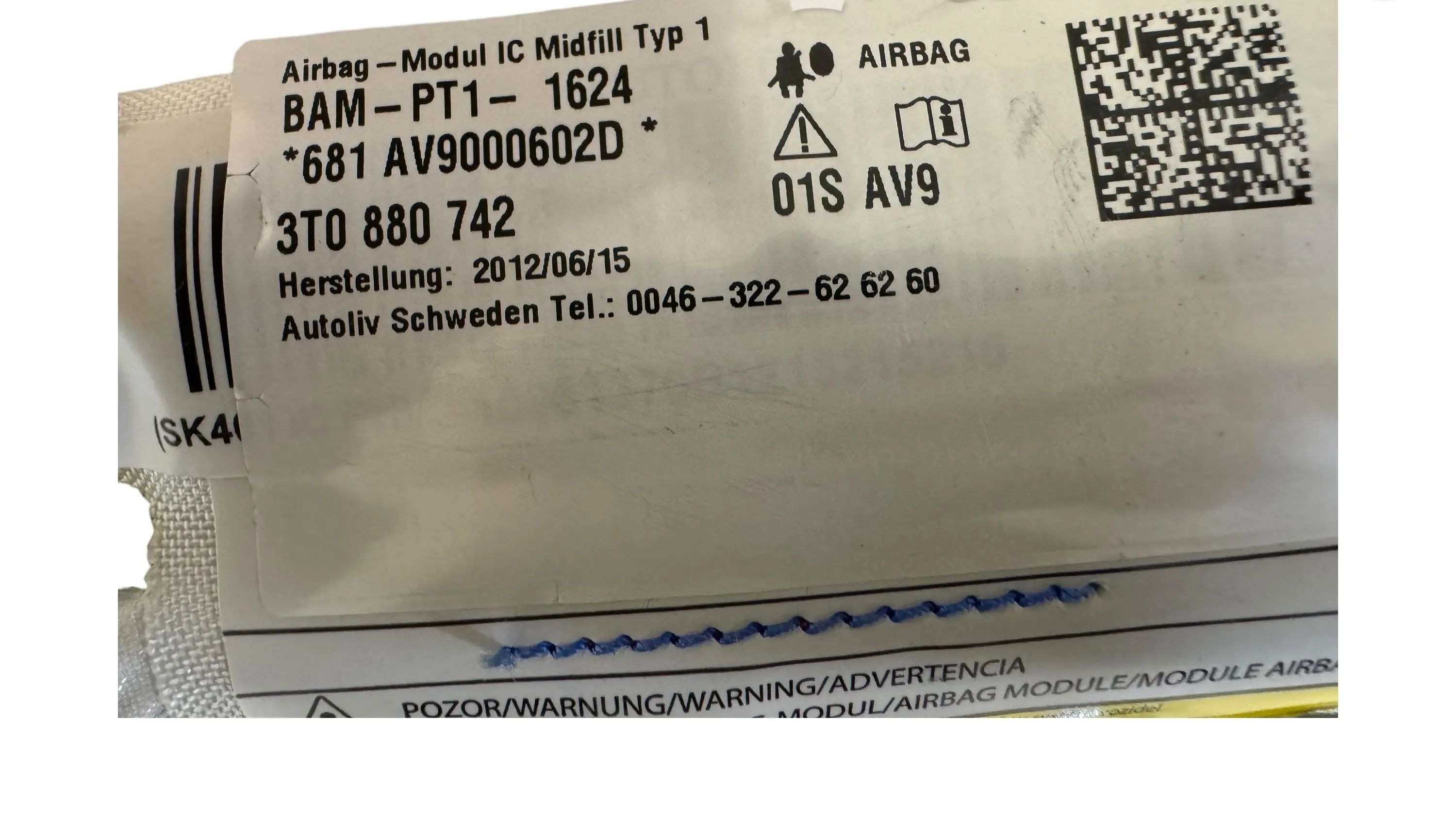 Боковая подушка безопасности 3T0880742, BPT11624 Skoda Superb B6 (3T)
