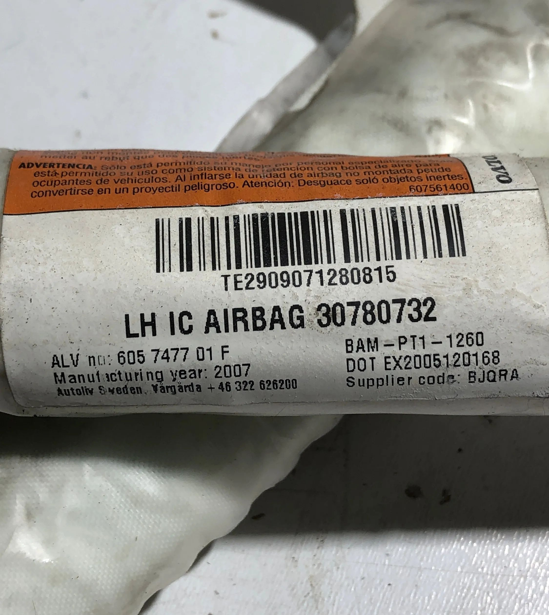 Боковая подушка безопасности 30780732, 605747701F Volvo C30