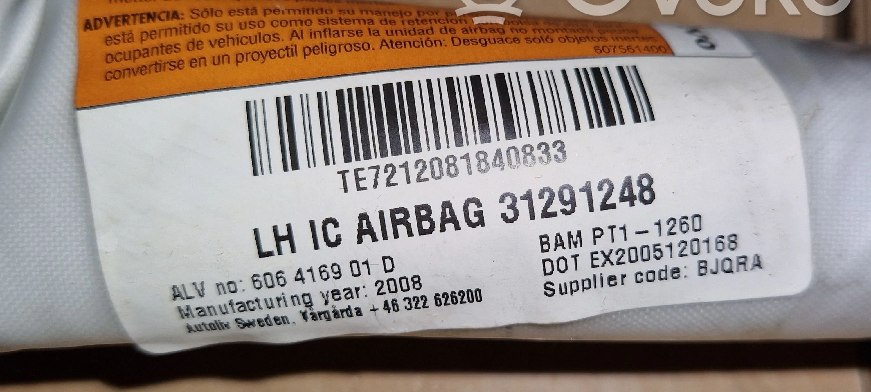 Боковая подушка безопасности 31291248 Volvo V70