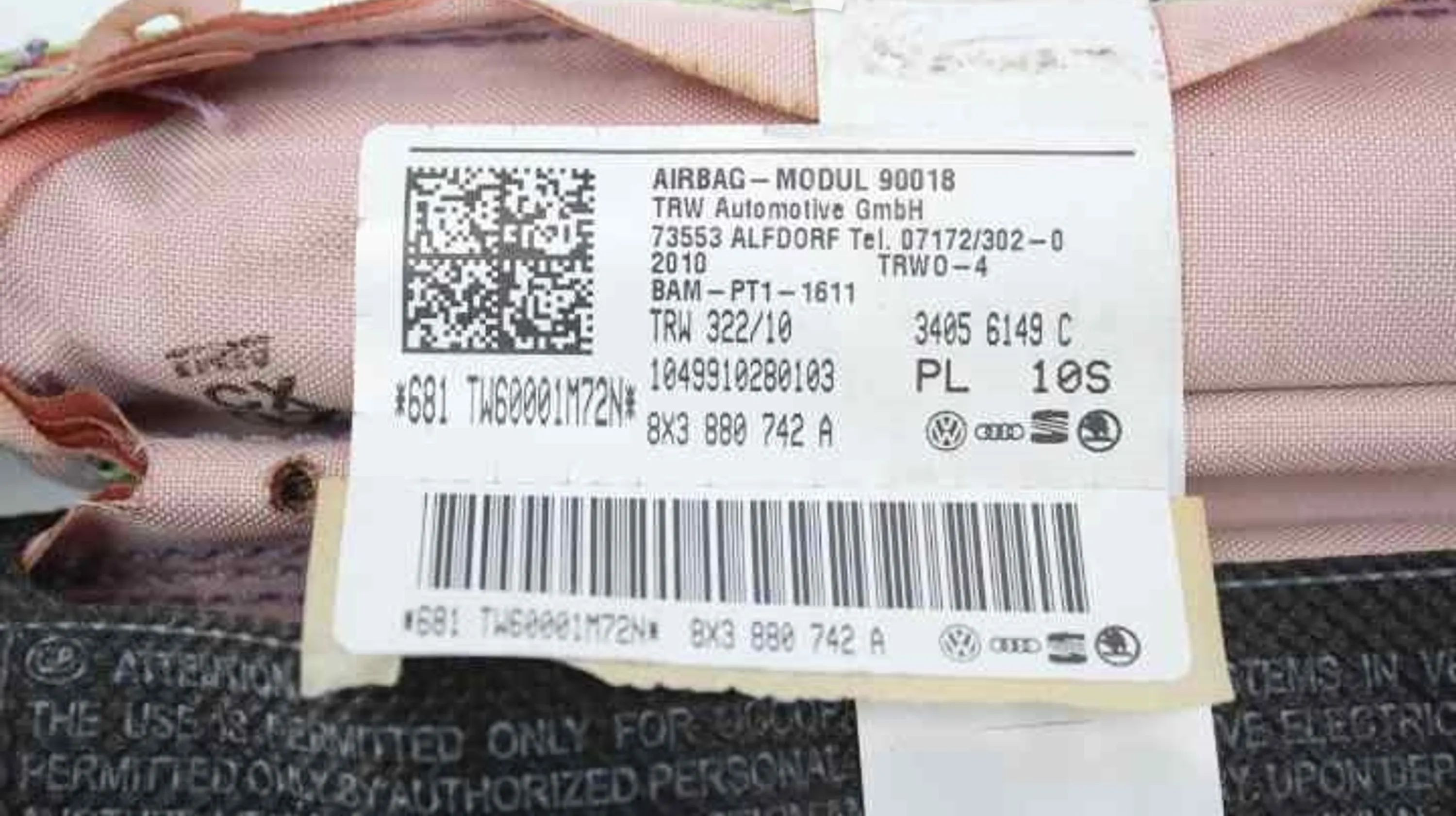 Боковая подушка безопасности 8X3880742B, 8X3880742A Audi A1