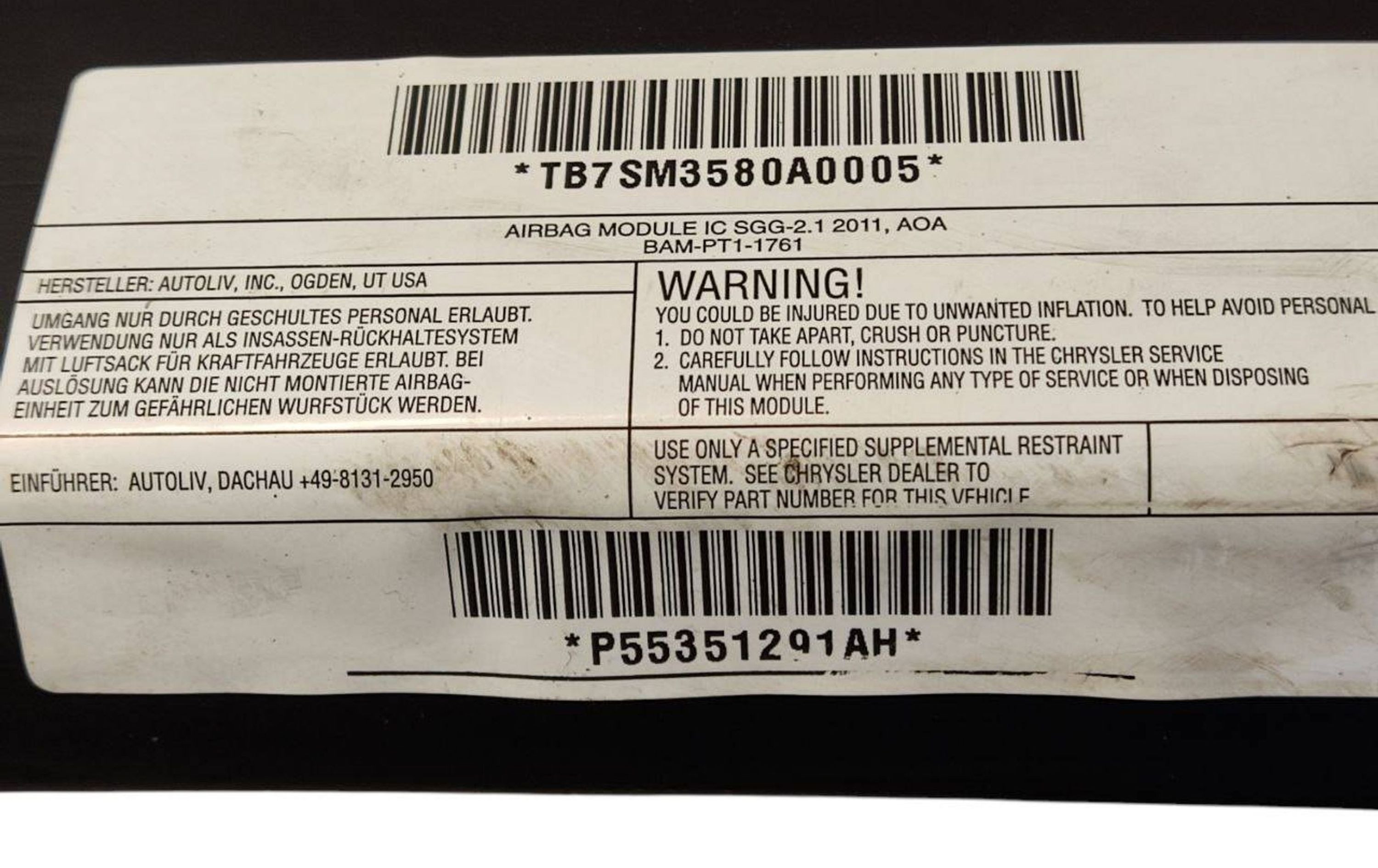 Боковая подушка безопасности 609261301A, 6062875 Jeep Compass