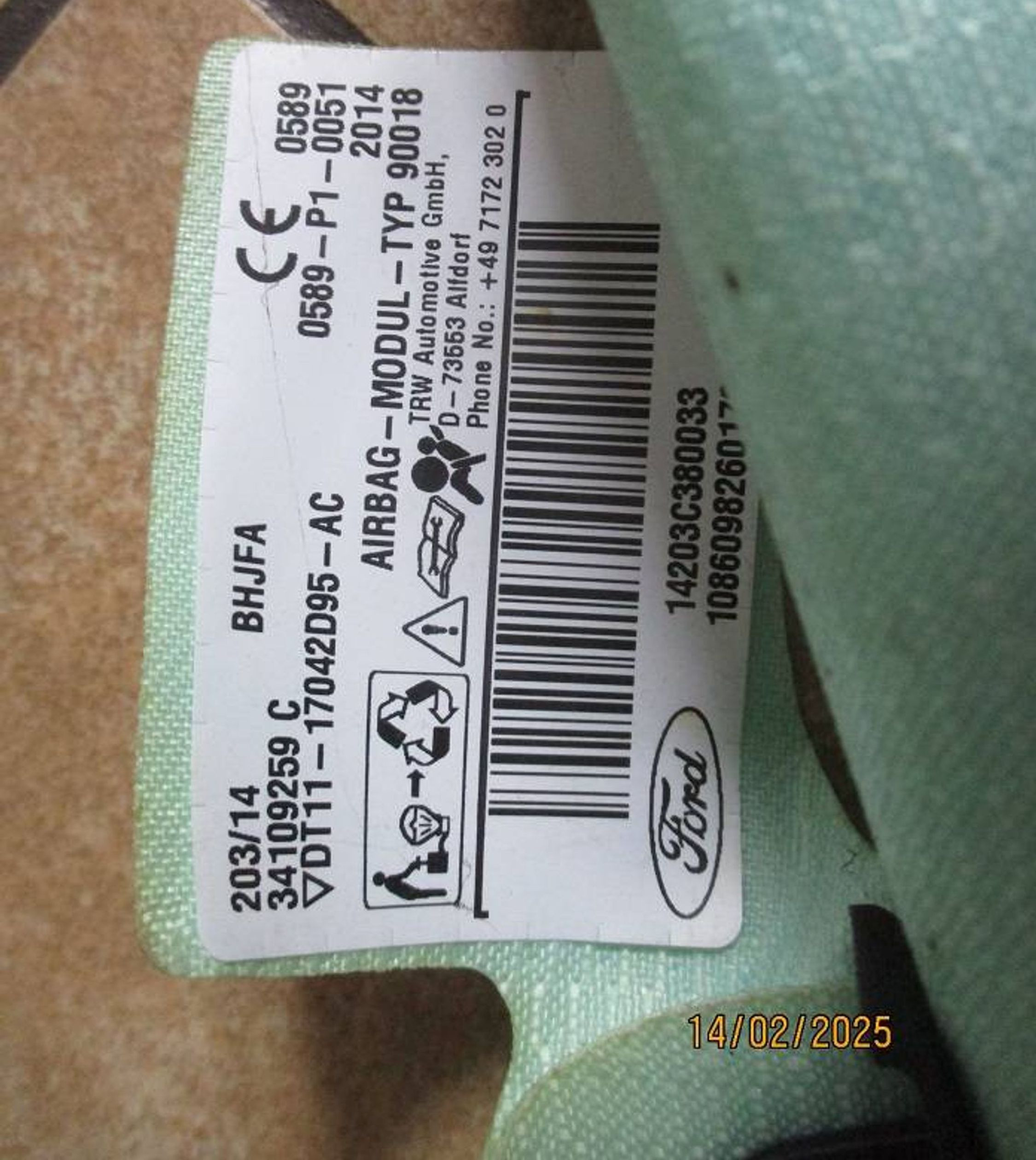 Боковая подушка безопасности DT1117042D95AC, 0589P10051 Ford Transit - Tourneo Connect
