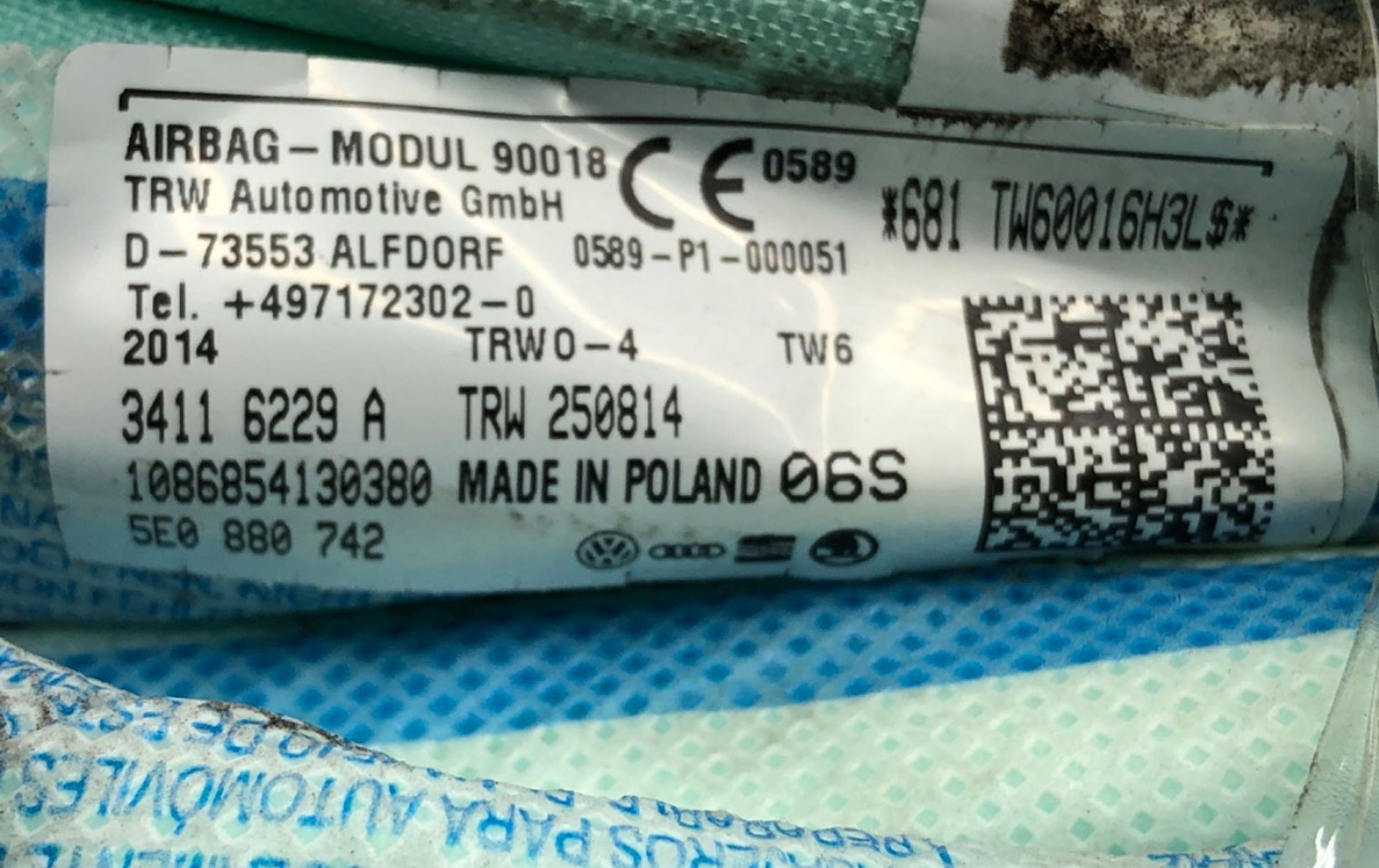 Боковая подушка безопасности 5E0880742 Skoda Octavia Mk3 (5E)