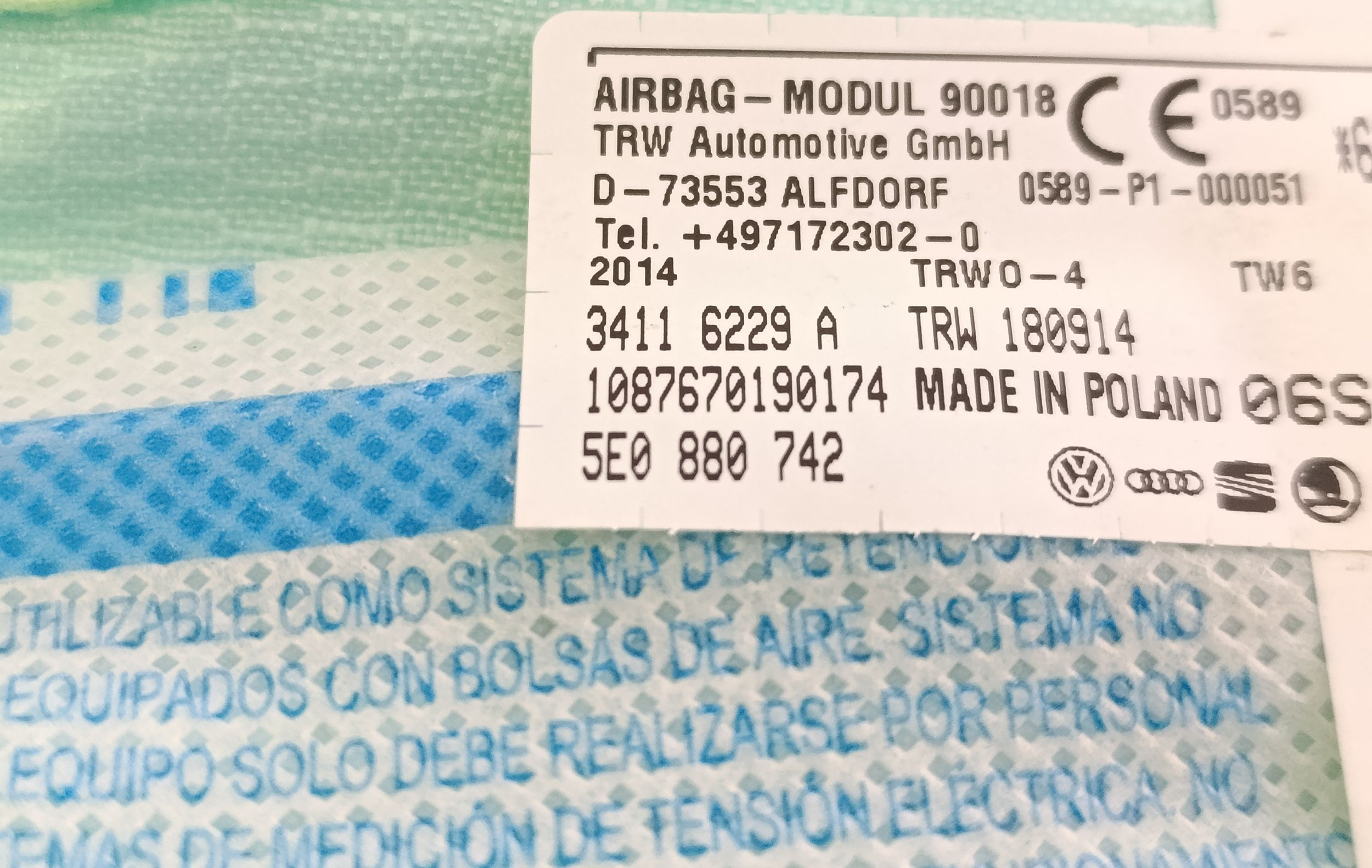 Боковая подушка безопасности 5E0880742, 34116229A Skoda Octavia Mk3 (5E)