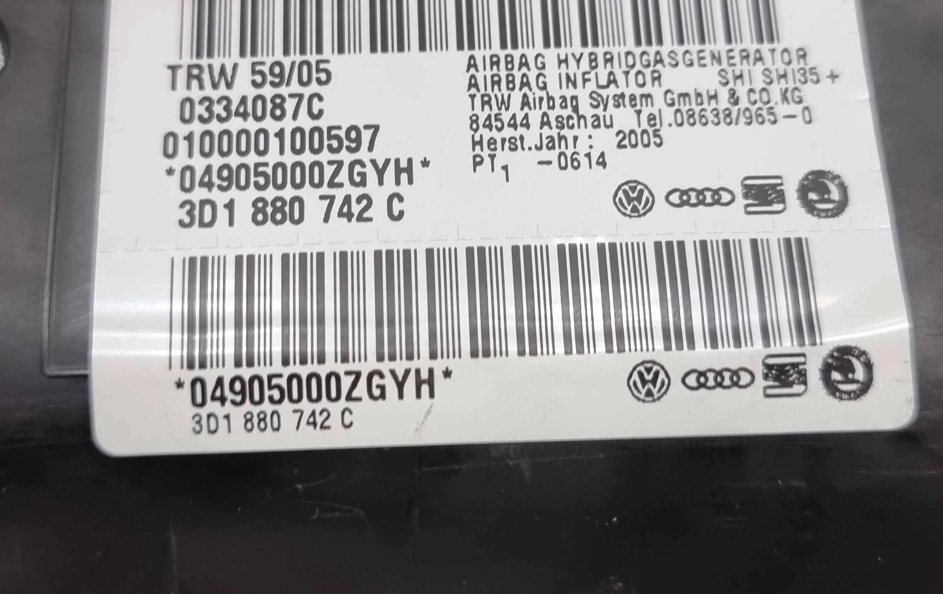 Боковая подушка безопасности 3D1880742C, 0334087C Volkswagen Phaeton