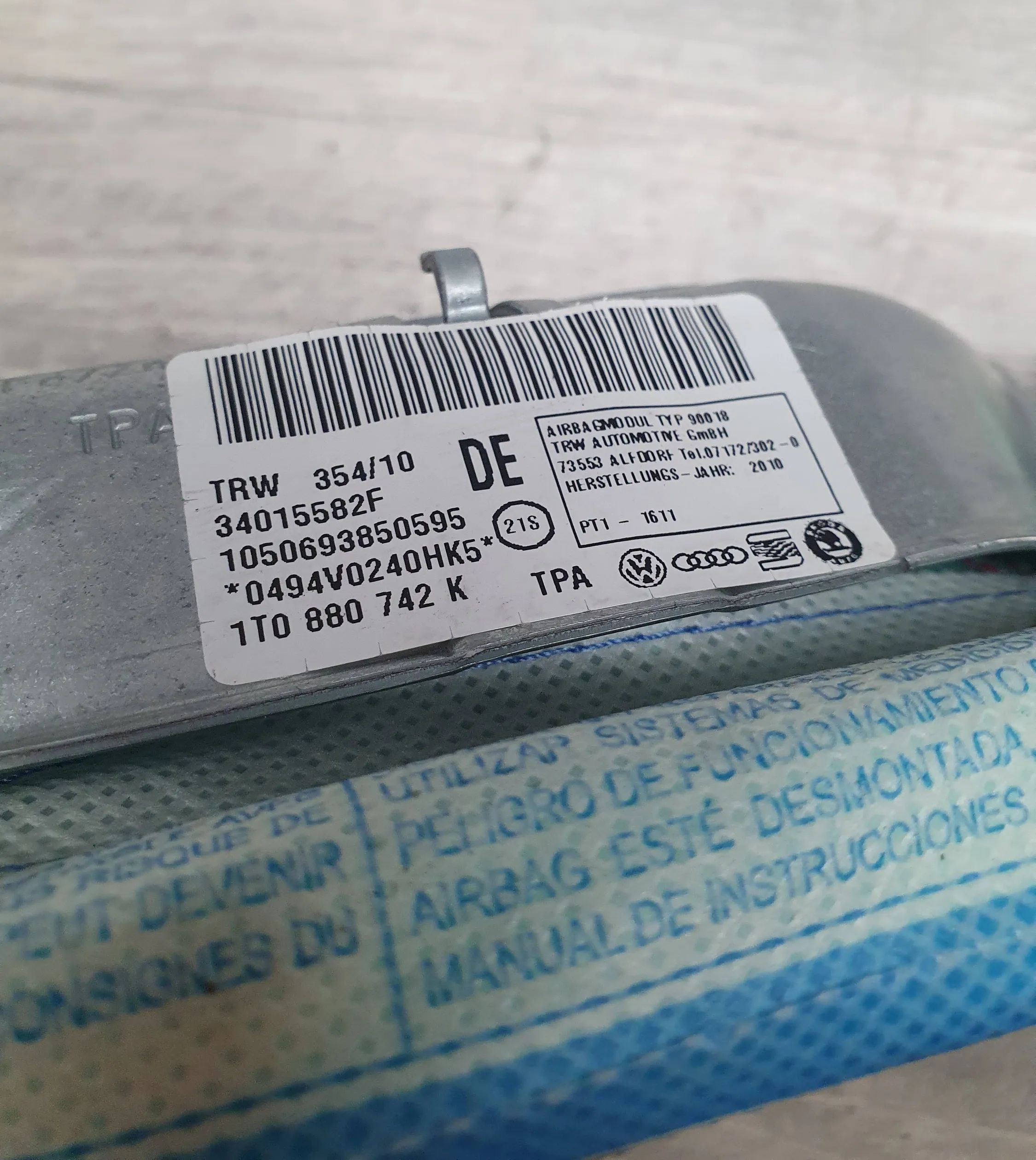 Боковая подушка безопасности 1T0880742K, 34015582F Volkswagen Touran II