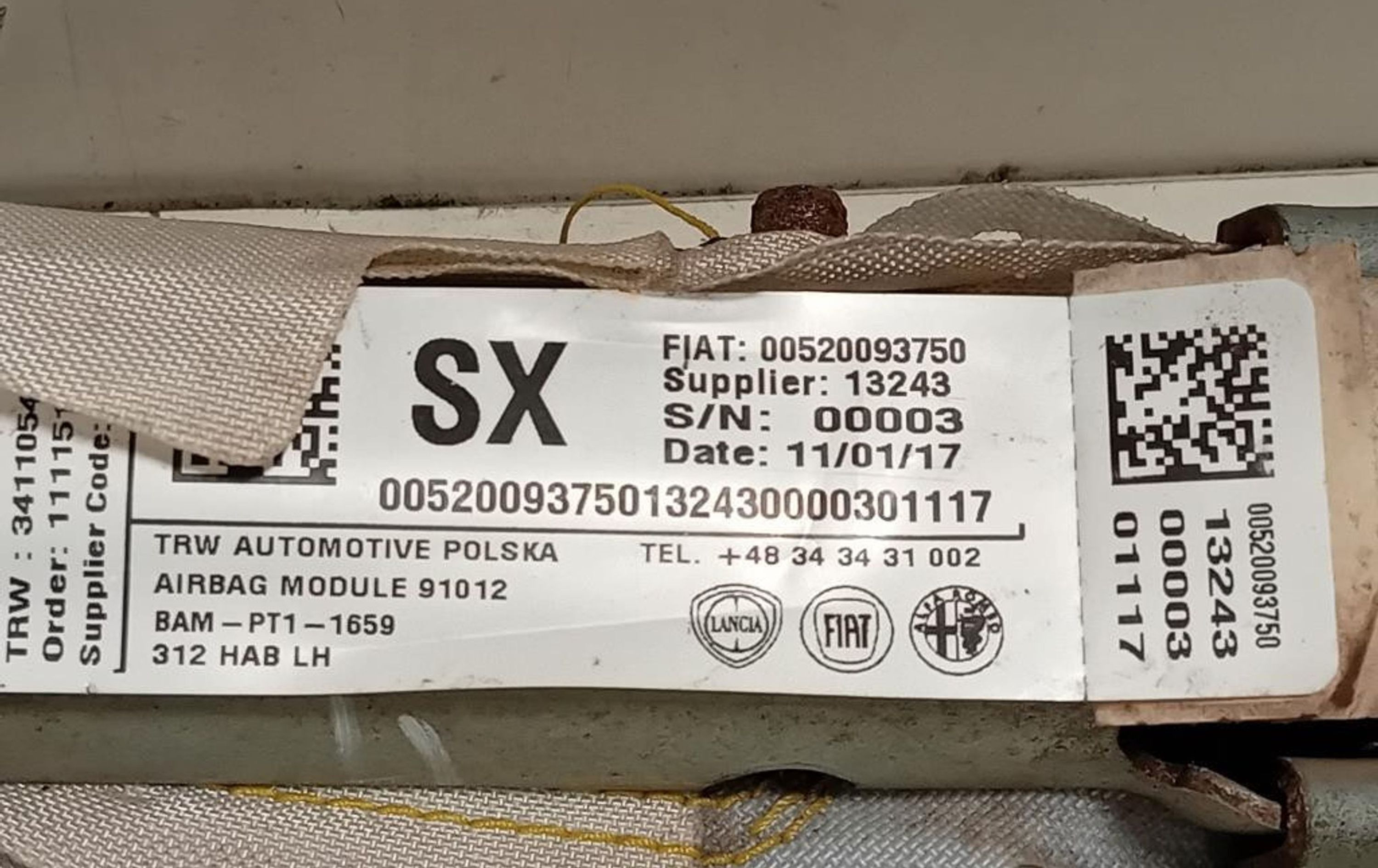 Боковая подушка безопасности 00520093750, 00520093750 Fiat 500X