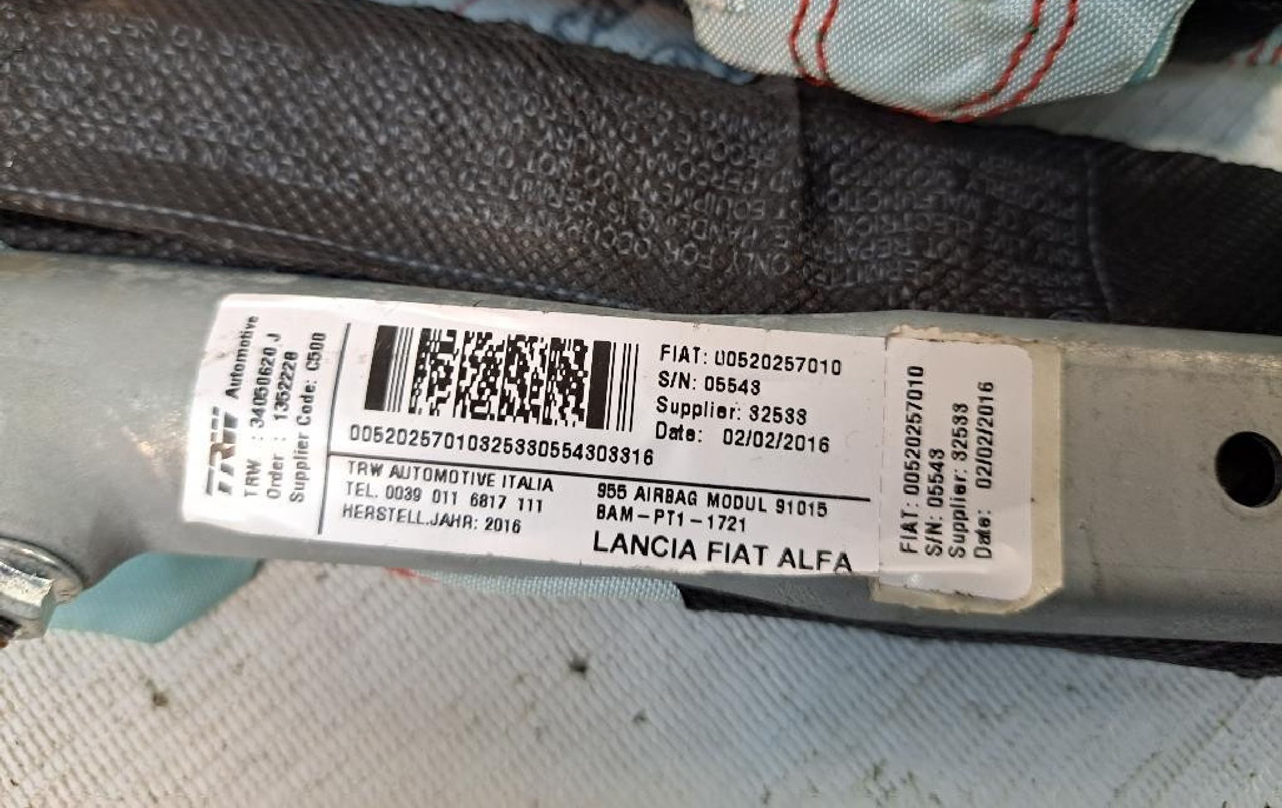 Боковая подушка безопасности 00520257010, 00520257010 Alfa Romeo Mito