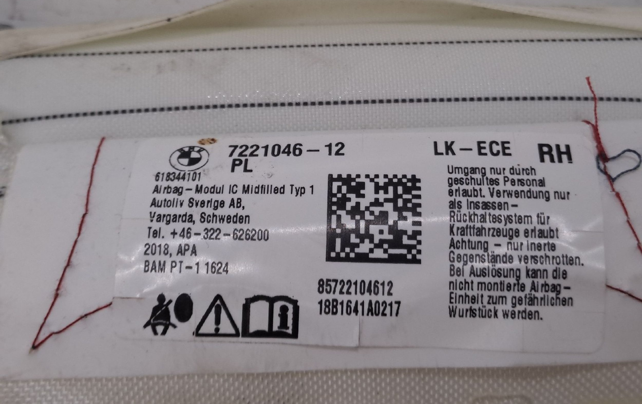 Боковая подушка безопасности 722104612 BMW 4 F36 Gran coupe