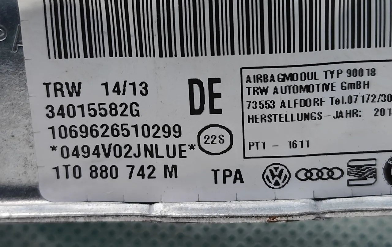 Боковая подушка безопасности 1T0880742M, 34015582G Volkswagen Touran II