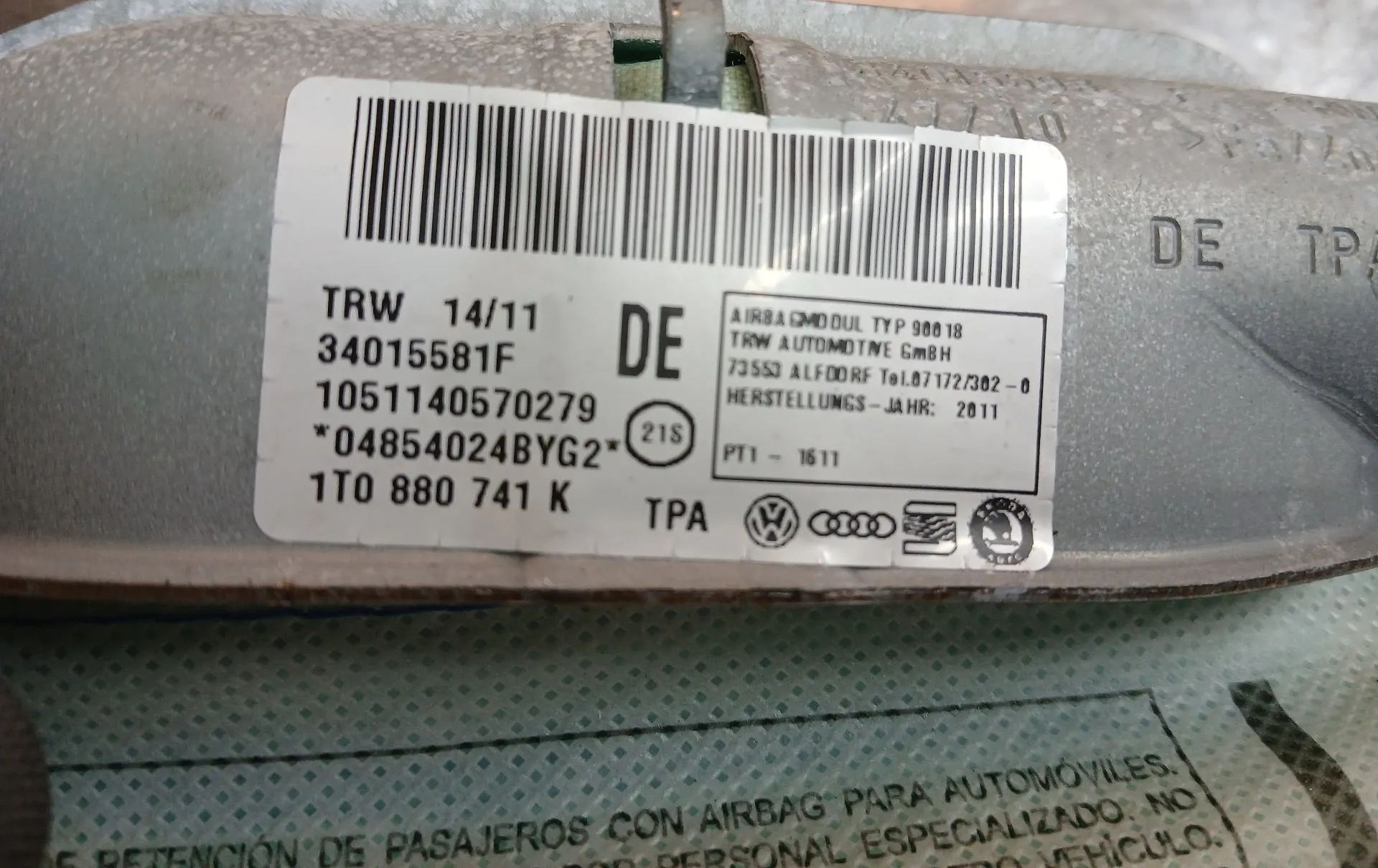 Боковая подушка безопасности 1T0880741K, 1051140570279 Volkswagen Touran II